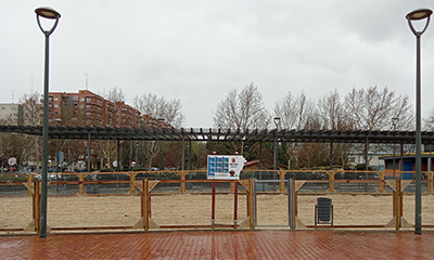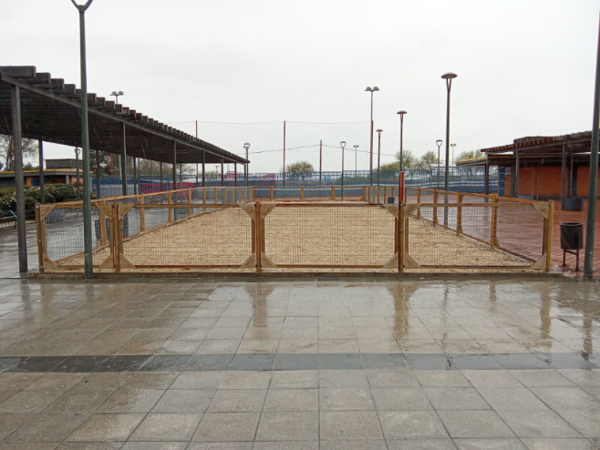 Ubicado en la calle Ciclista David Gea, junto al aparcamiento subterráneo, el nuevo espacio para mascotas cuenta con una superficie de aproximadamente 270 m2 de arena de río. Dicha área está vallada con un cerramiento de 1,2 m de altura y tiene una puerta peatonal antifuga de perros.