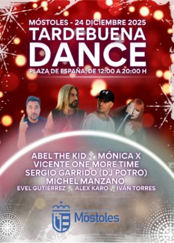 Y el mismo día de Nochebuena, miércoles 24 de diciembre, la Plaza de España mostoleña va a estar animada, de 12:00 h a 20:00 h, con la música de distinguidos DJs como Abel The Kid, Mónica X o Vicente One More Time, entre otros, que harán bailar a mostoleños y visitantes. En esta Tardebuena Dance,a cargo de Unika Fm, durante 8 horas ininterrumpidas sonarán grandes temas para el disfrute de todos los asistentes.