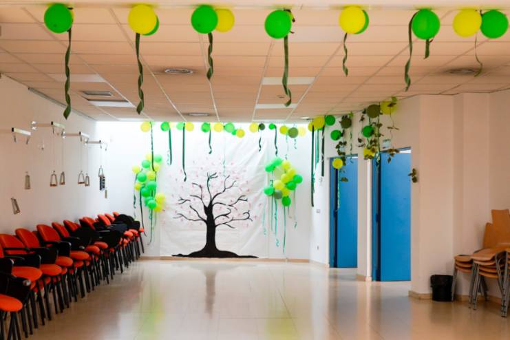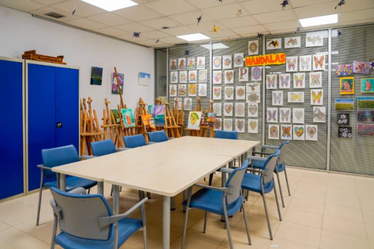 El centro cuenta con biblioteca, dos aulas, dos salas polivalentes, gimnasio, taller de terapia, salón de juegos y sala de informática.