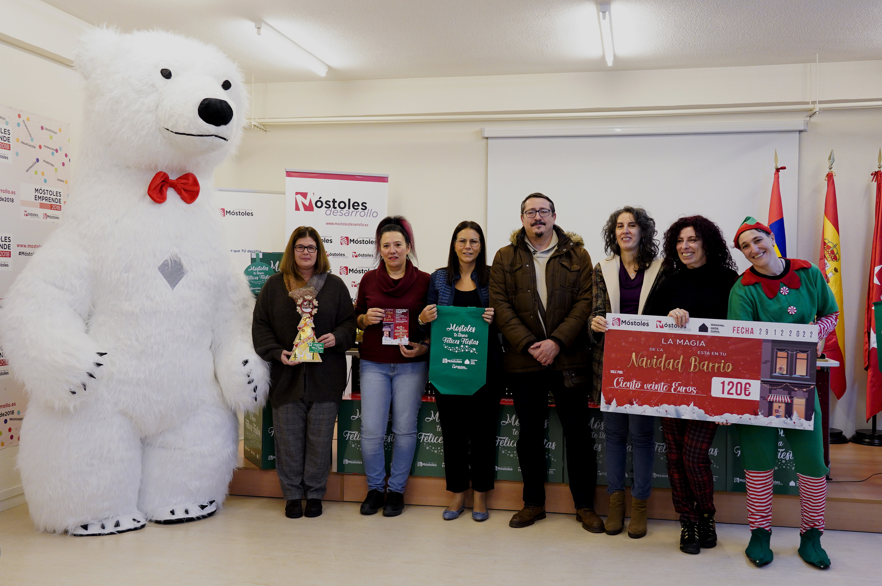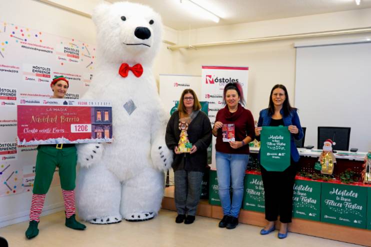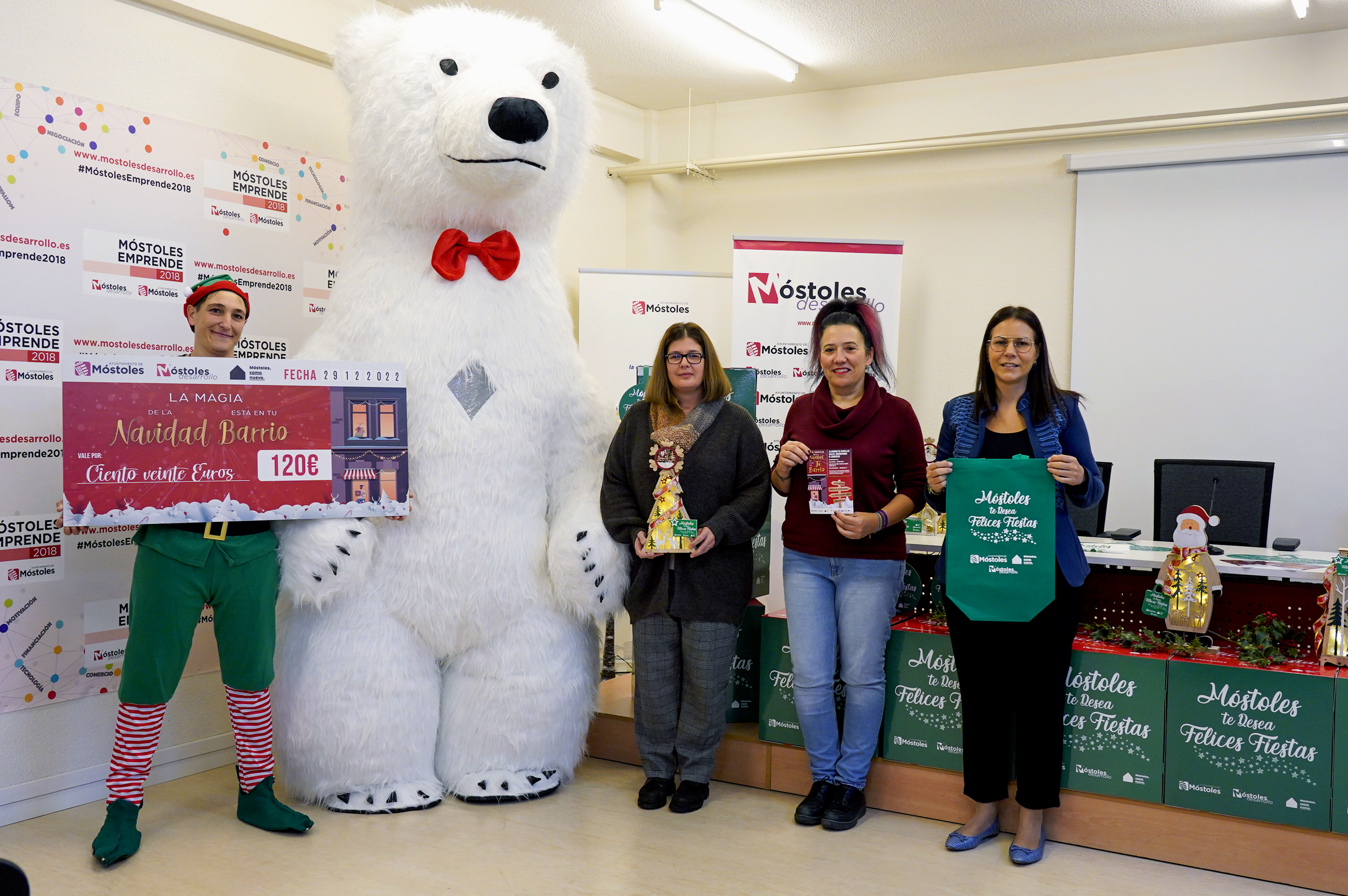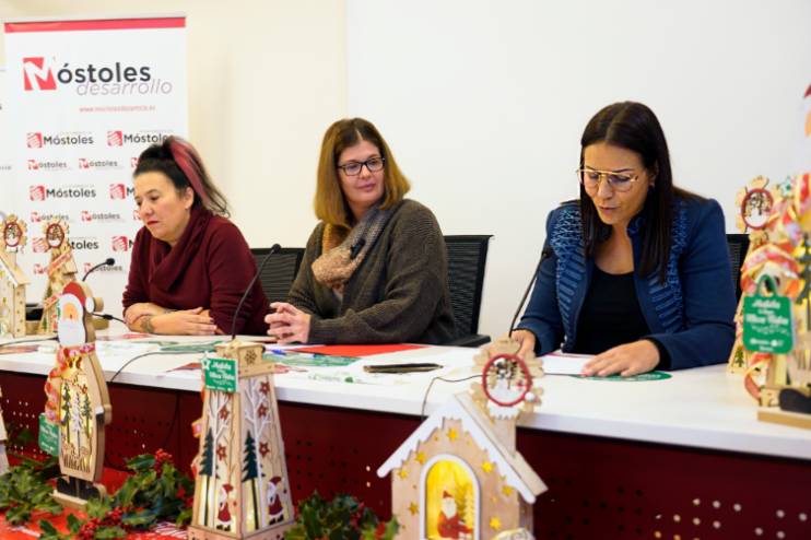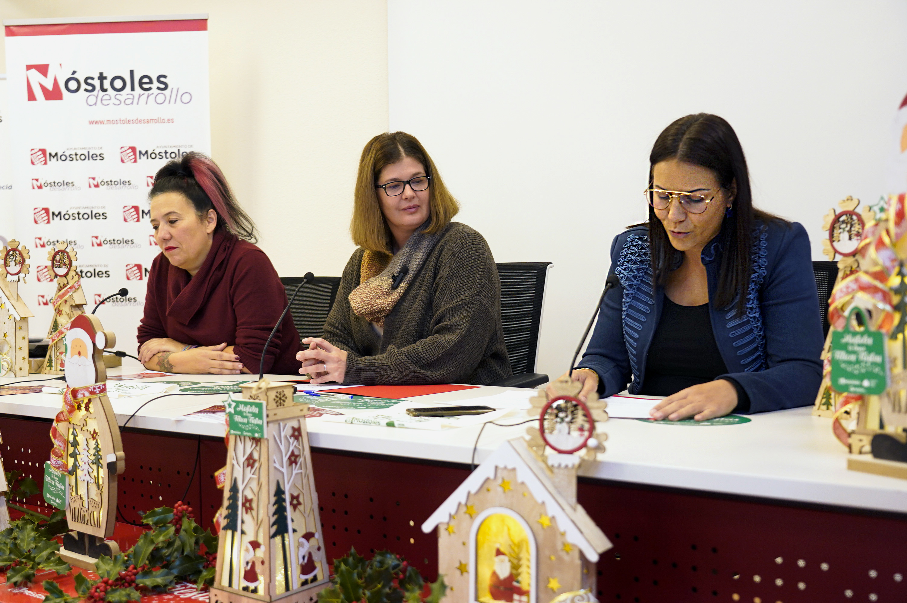 La Alcaldesa, Noelia Posse, acompañada de la Concejala de Empleo y Nuevas Tecnologías, Rebeca Prieto, y la Portavoz de Podemos, Mónica Monterreal, ha presentado hoy la campaña "La magia de la Navidad está en tu barrio", que pone en marcha el Gobierno de Móstoles, a través de Móstoles Desarrollo, para dinamizar los barrios y ayudar a la economía local, incentivando las compras en los comercios del municipio.