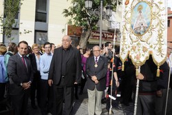 El regidor, a petición de los costaleros, portó durante un tramo de la procesión la imagen de la Patrona de Móstoles. Más de un millar de personas han asistido a la misa.