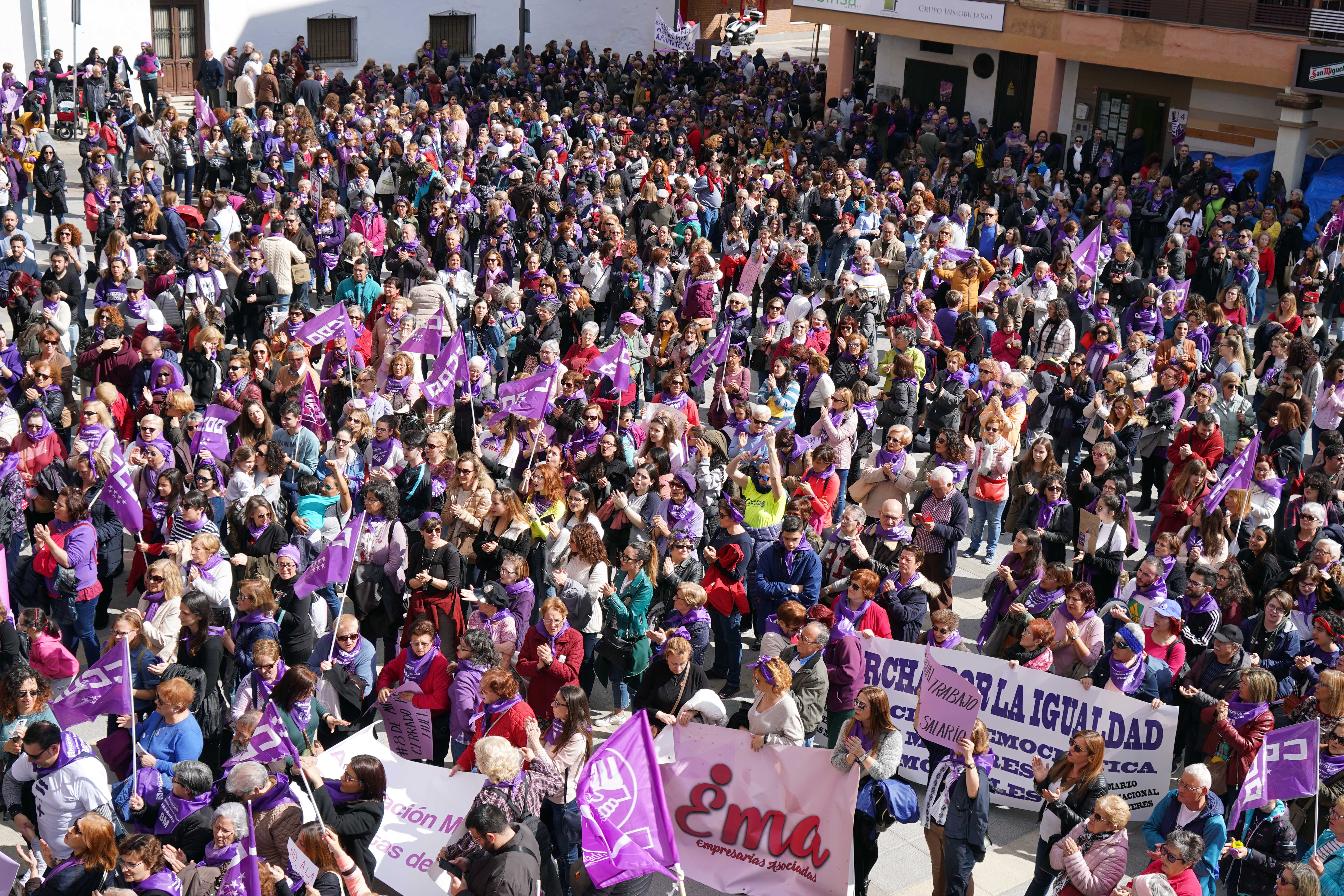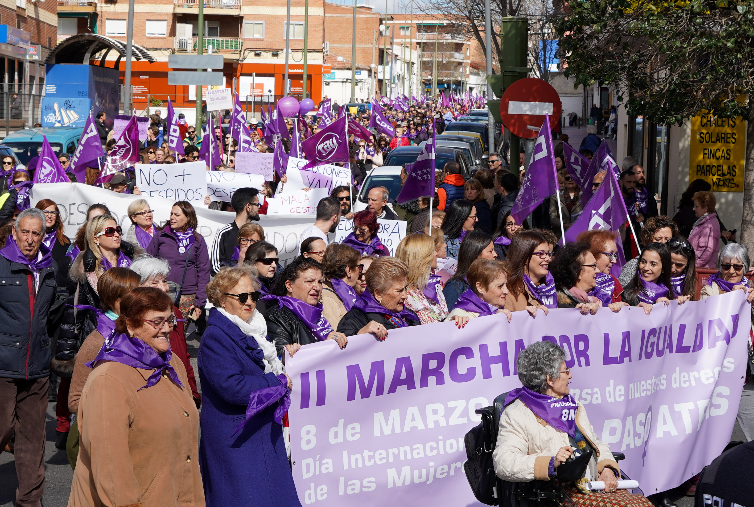 La marcha, que arrancó en la Plaza de la Cultura y discurrió por el centro del municipio durante algo menos de una hora, finalizó en la Plaza de España, sede de la Casa Consistorial, desde cuyo balcón, la alcaldesa, Noelia Posse, y concejalas de la Corporación desplegaron la pancarta del 8M, con el lema "Ni un paso atrás".