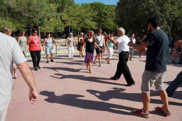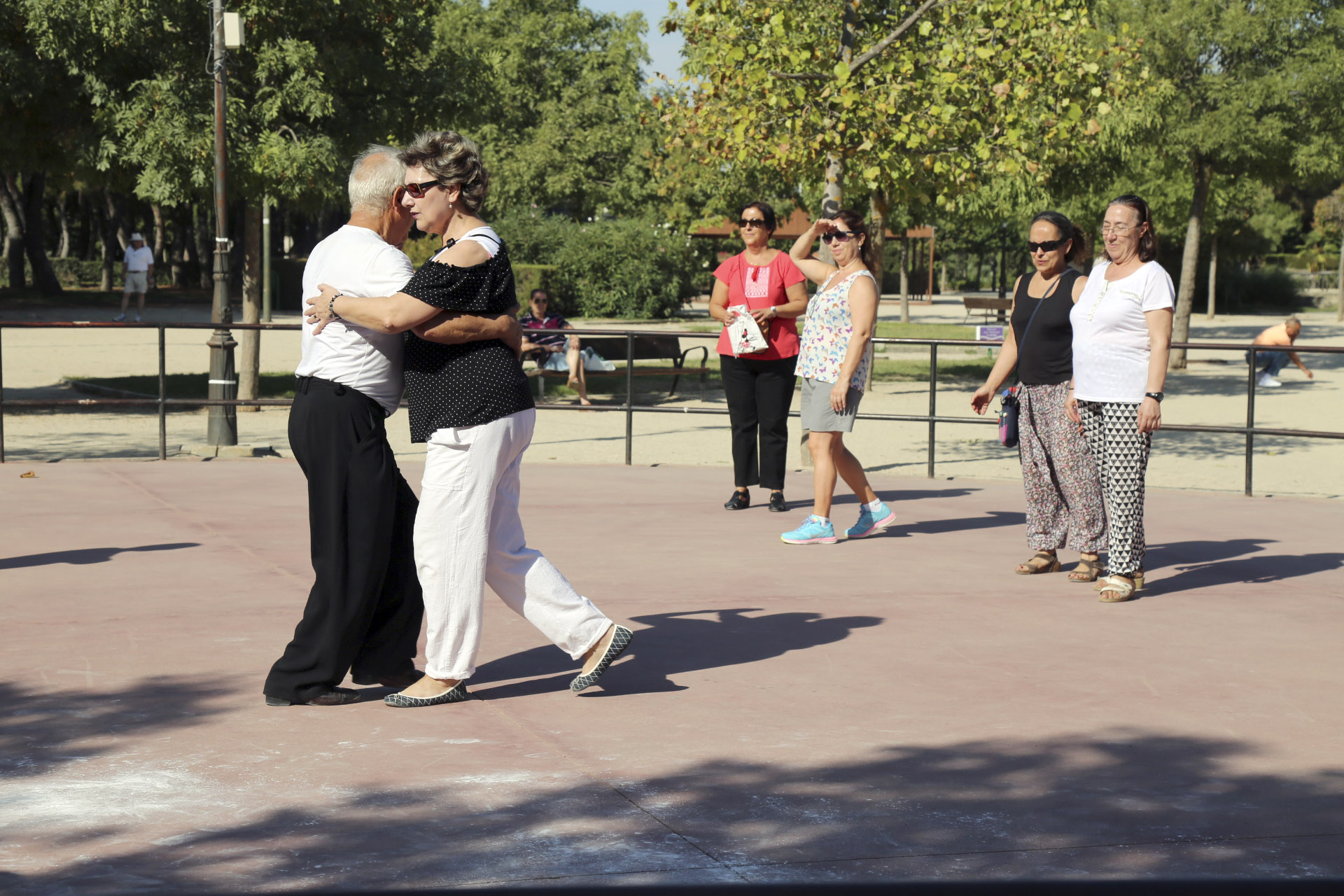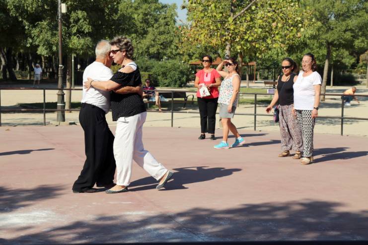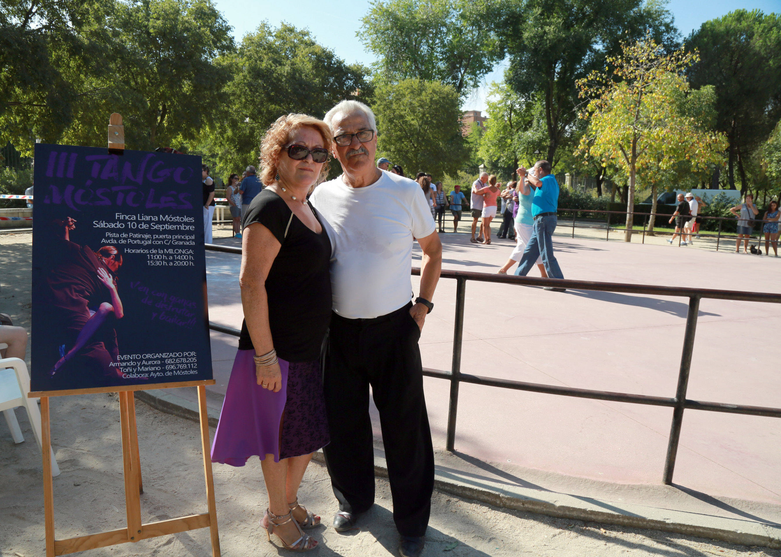 Imagen en alta resolución. Este enlace se abrirá mediante lightbox, puede haber un cambio de contextoLa Asociación de Amigos del tango de Móstoles ha celebrado esta mañana una exhibición y una clase gratuita de una hora de duración en la pista circular de la Finca Liana. Esta actividad se enmarca dentro del programa de las Fiestas Patronales, que comenzaron ayer.