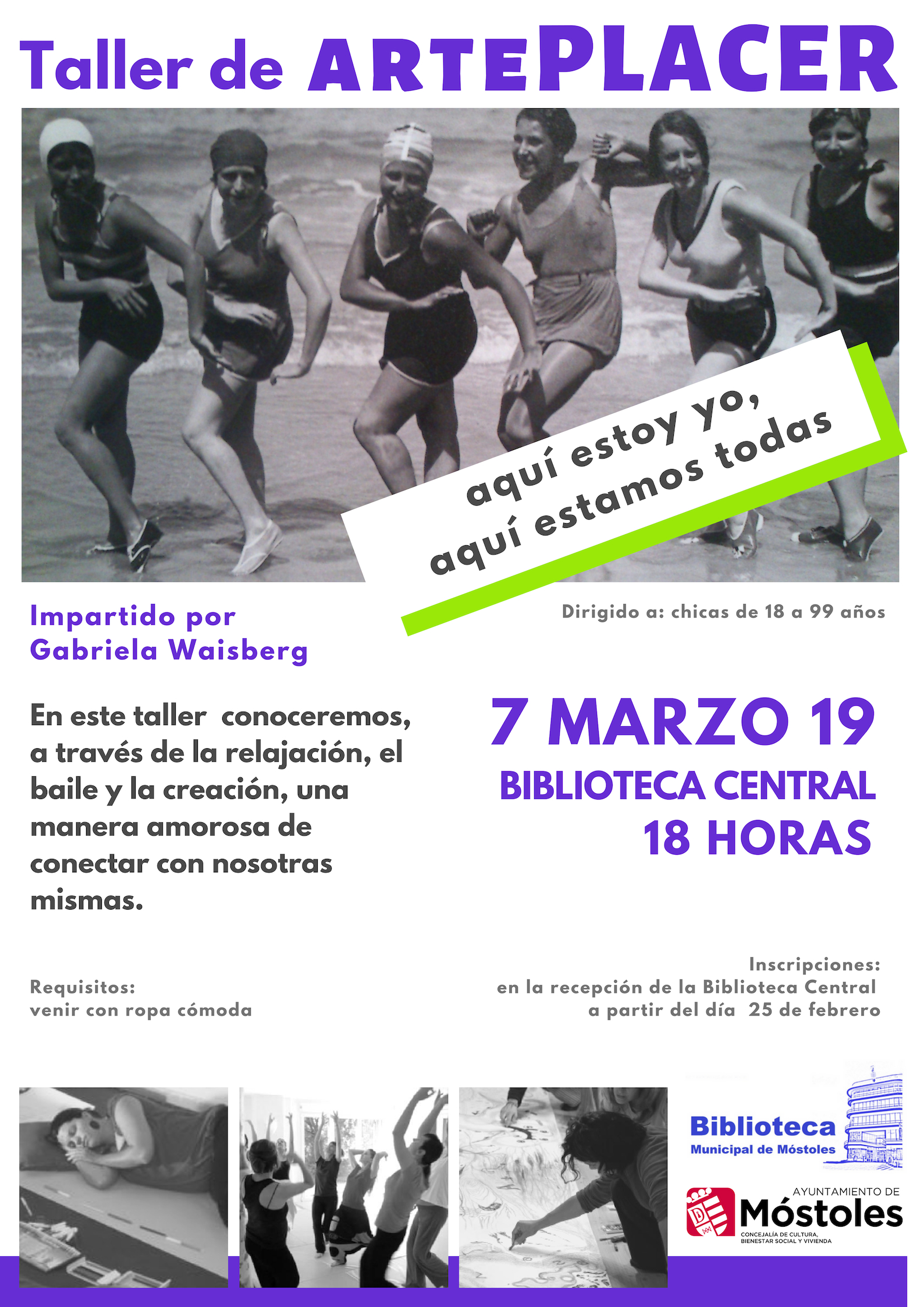 Comienzan las inscripciones para el Taller ArtePLACER destinado a chicas desde 18 a 99 años. Las inscripciones se realizarán en la Recepción de la Biblioteca Central. 25 plazas disponibles.