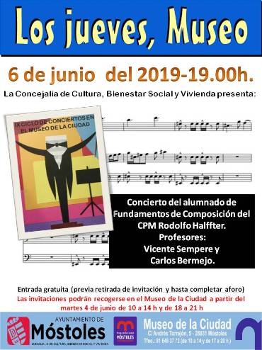 El Museo de la Ciudad acoge, a partir de las 19 horas, un Concierto de alumnos de Fundamentos de Composición del Conservatorio Rodolfo Halffter de Móstoles.