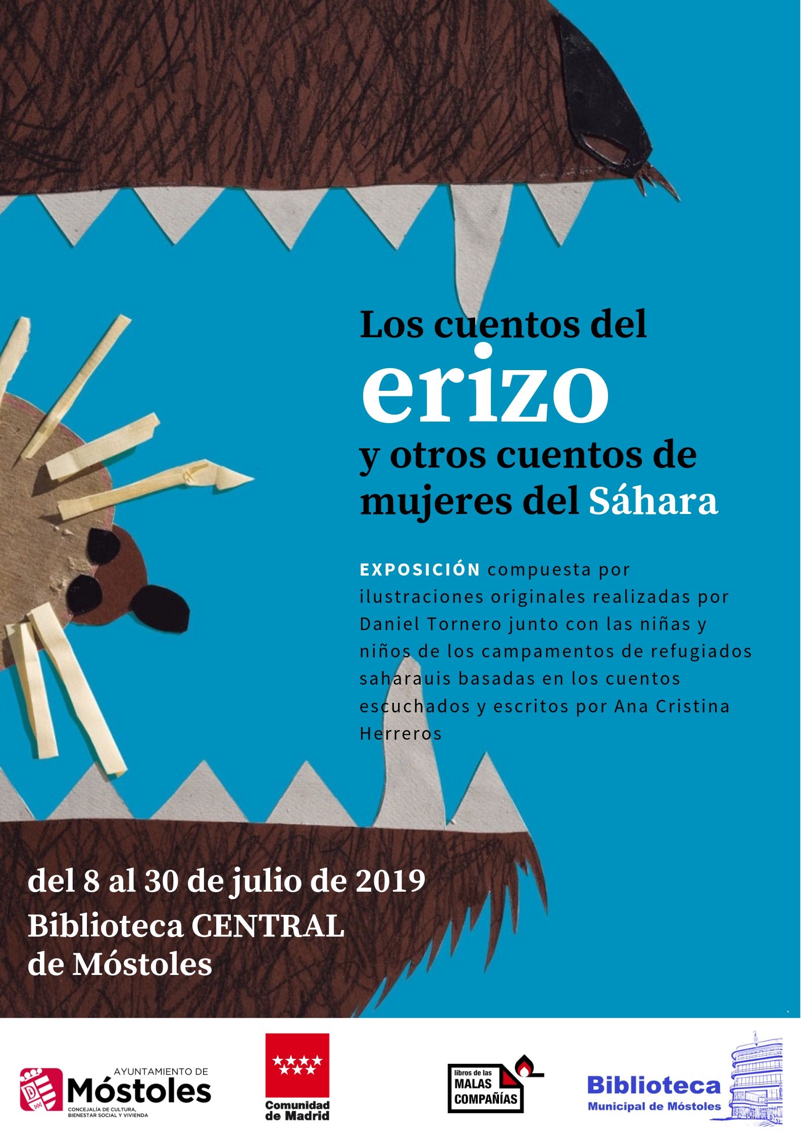 Hasta el 30 de junio se puede visitar esta muestra compuesta por ilustraciones originales realizadas por Daniel Tornero junto con las niñas y niños de los campamentos de refugiados saharauis, basadas en los cuentos escuchados y escritos por Ana Cristina Herreros.