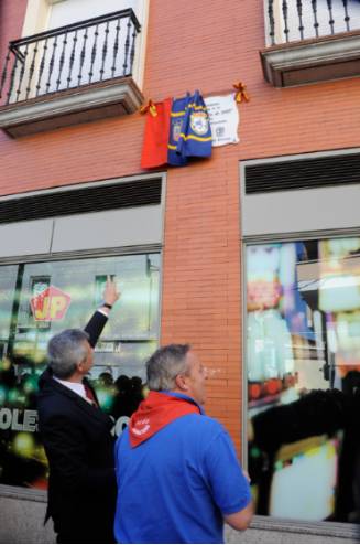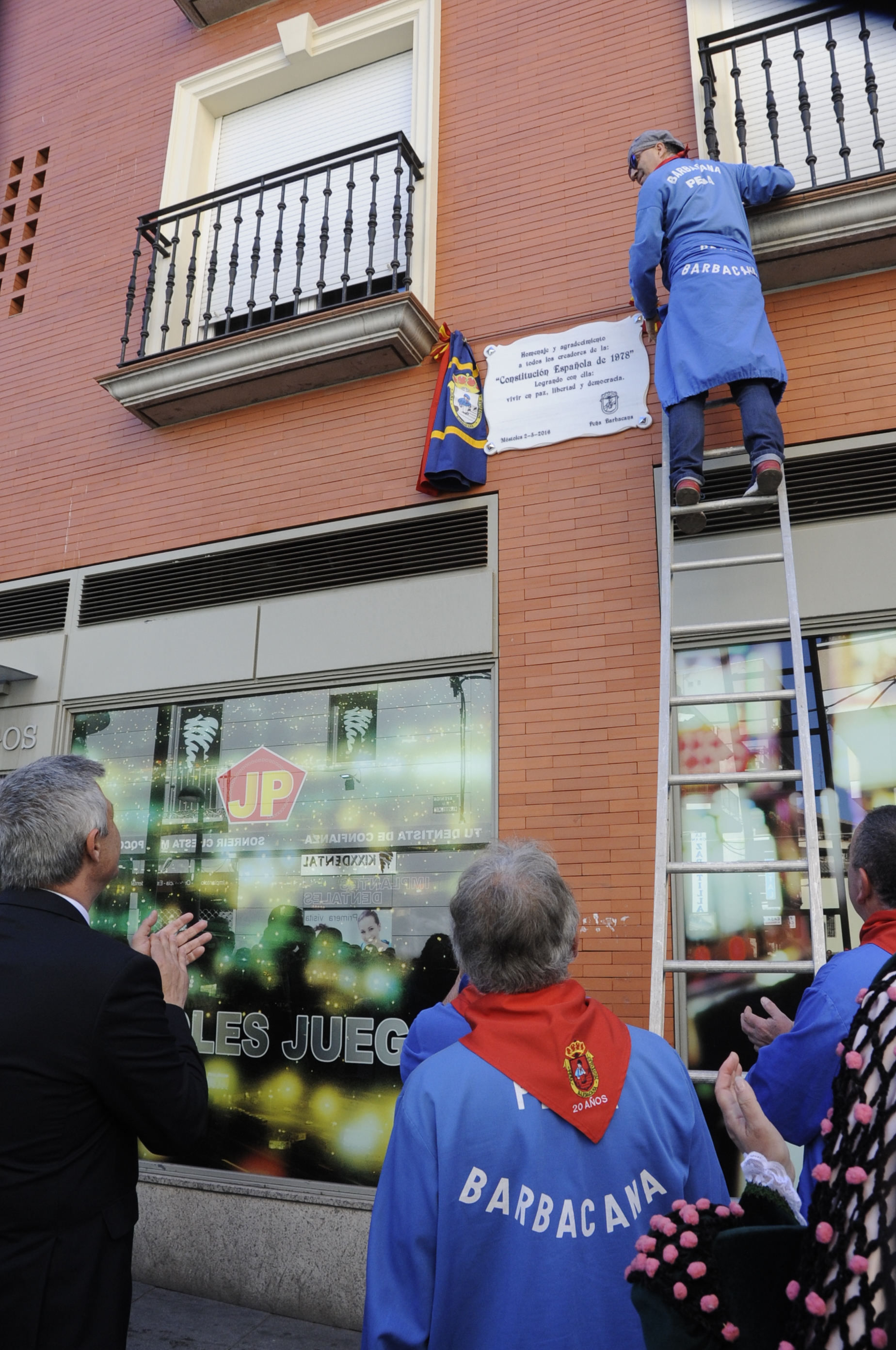 El Alcalde de Móstoles, David Lucas, ha descubierto esta mañana una placa conmemorativa que la Peña Barbacana ha dedicado en esta ocasión a la Constitución, en el marco de las Fiestas del 2 de Mayo.