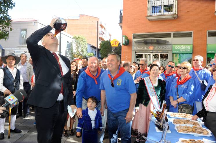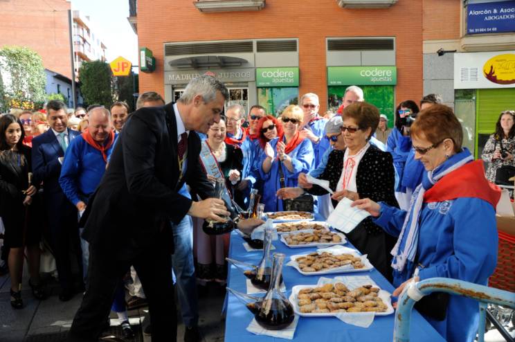 Acompañado de miembros del Equipo de Gobierno y de la Corporación municipal, al que se sumaron numerosos vecinos el regidor mostoleño compartió posteriormente la invitación al brindis, a base de moscatel y dulces típicos, de la peña Barbacana.