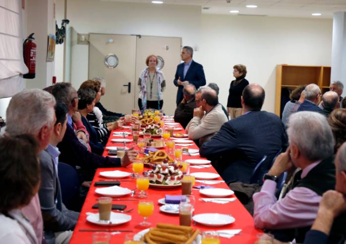 Imagen en alta resolución. Este enlace se abrirá mediante lightbox, puede haber un cambio de contextoEl alcalde de Móstoles, David Lucas, acompañado de la concejala de Igualdad, Sanidad y Mayores, Ana Mª Rodrigo, ha asistido esta mañana a un desayuno navideño con personas mayores del Centro de Mayores Juan XXIII del municipio. El primer edil ha felicitado las fiestas a todos los asistentes y les ha agradecido su activa y permanente implicación en todas y cada una de las actividades que se organizan desde el centro.