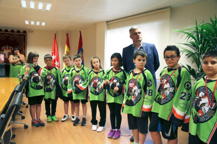 El Alcalde de Móstoles felicita a los jóvenes deportistas del equipo de Hockey `Ciudad Patina Renos´ por sus logros alcanzados en la temporada 2015/16