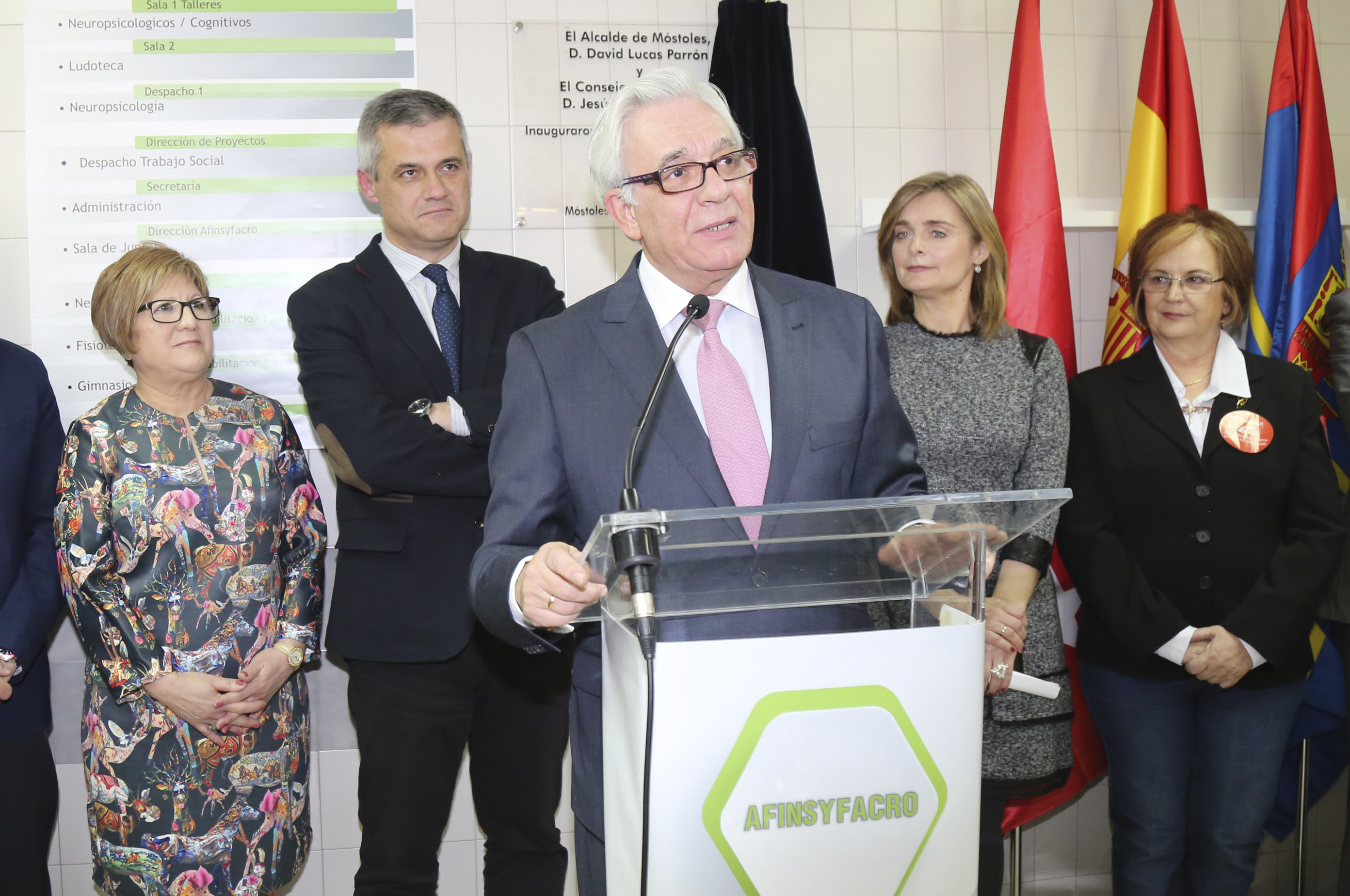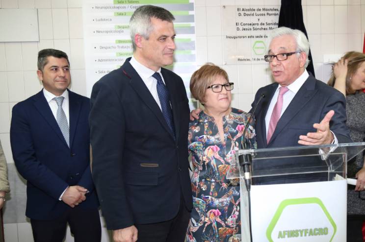 Al acto de inauguración también ha contado con el consejero de Sanidad de la Comunidad de Madrid, Jesús Sánchez Martes, la concejala de Igualdad, Sanidad y Mayores, Ana María Rodrigo, de la presidenta de Afinsyfacro, Paulina Jiménez, y otros concejales del Equipo de Gobierno y de la Corporación Municipal.
