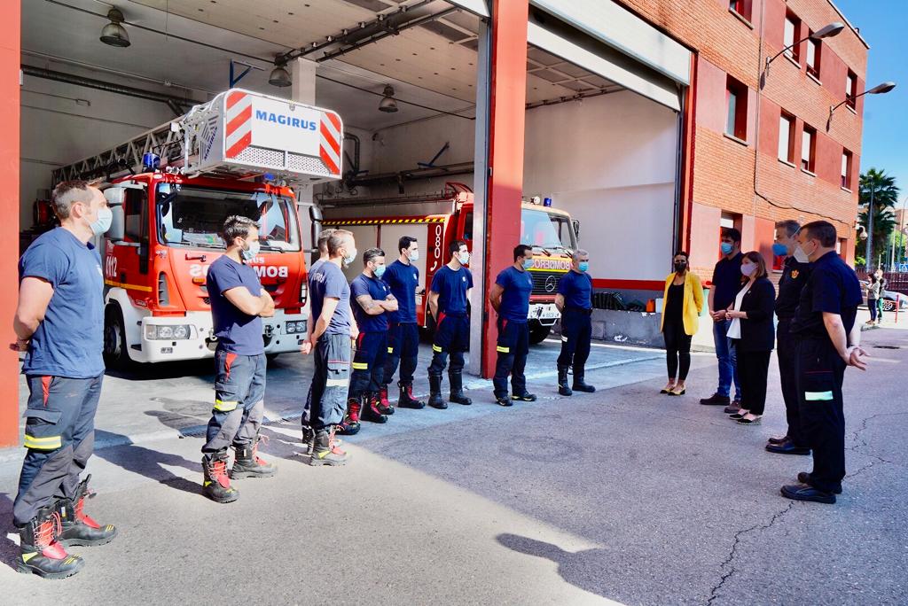 bomberos 6 pImagen en alta resolución. Este enlace se abrirá mediante lightbox, puede haber un cambio de contextobomberos 6 pLa Alcaldesa de Móstoles, Noelia Posse, acompañada por el Concejal de Seguridad, Convivencia, Cultura y Transición Ecológica, Alejandro Martín, y la Concejala de Presidencia, Rebeca Prieto, ha visitado esta mañana la base del Servicio de Extinción de Incendios y Salvamento de Móstoles (S.E.I.S.). Tras recorrer las instalaciones, guiados por el Oficial Jefe, Javier Guijarro, y el suboficial, Rafael Rodríguez, la Alcaldesa agradeció, en nombre de la Corporación municipal y de los vecinos de Móstoles, el gran trabajo realizado por la plantilla desde que comenzó la crisis del coronavirus.