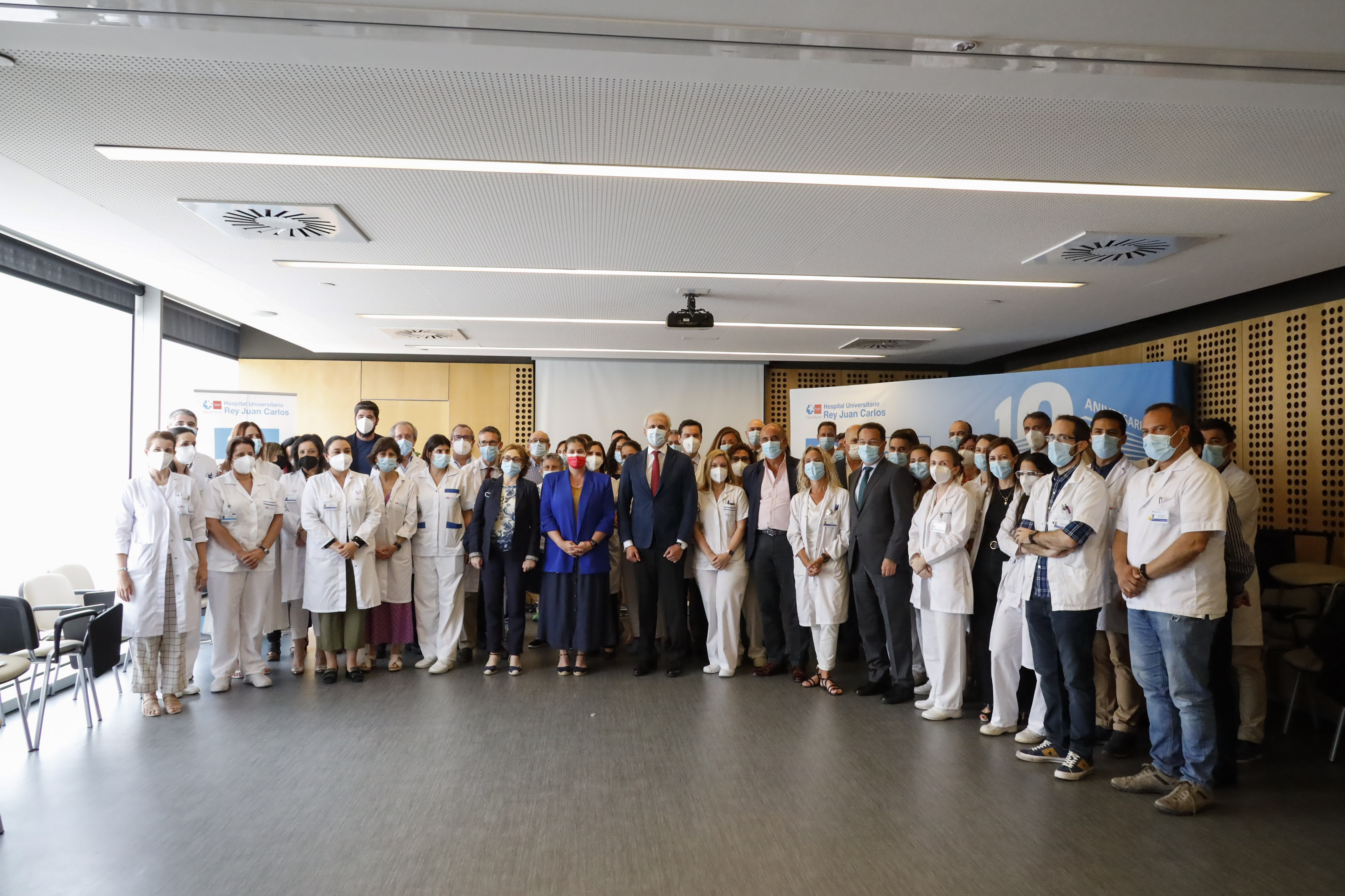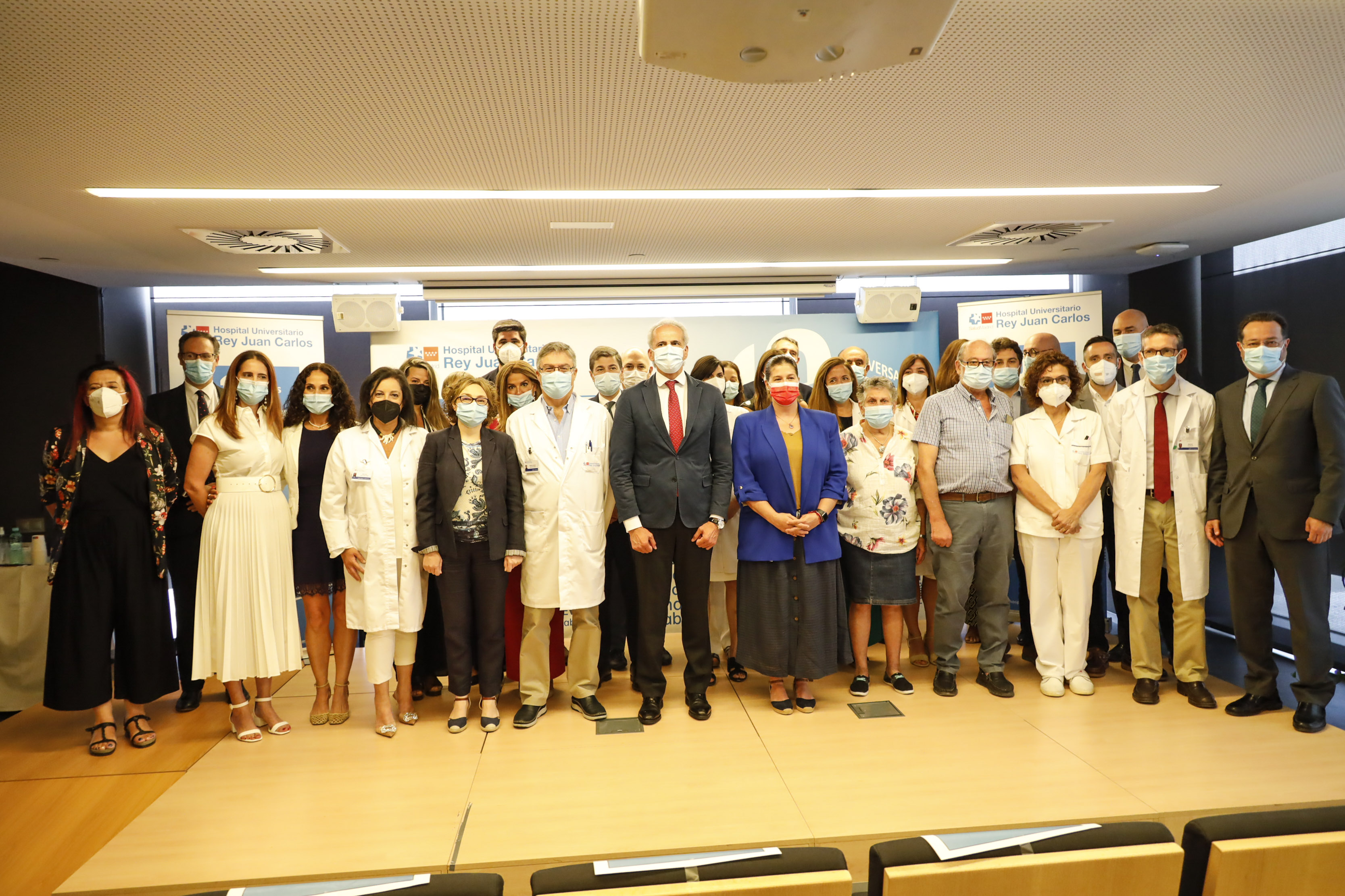 10 aniversario HRJC Hospital Rey Juancarlos_1Imagen en alta resolución. Este enlace se abrirá mediante lightbox, puede haber un cambio de contexto10 aniversario HRJC Hospital Rey Juancarlos_1La Alcaldesa de Móstoles, Noelia Posse, ha asistido esta mañana junto al Consejero de Sanidad de la Comunidad de Madrid, Enrique Ruiz Escudero, a la celebración del décimo aniversario de la puesta en marcha del Hospital Universitario Rey Juan Carlos que, ubicado en Móstoles, da cobertura a 180.000 personas en 18 municipios.