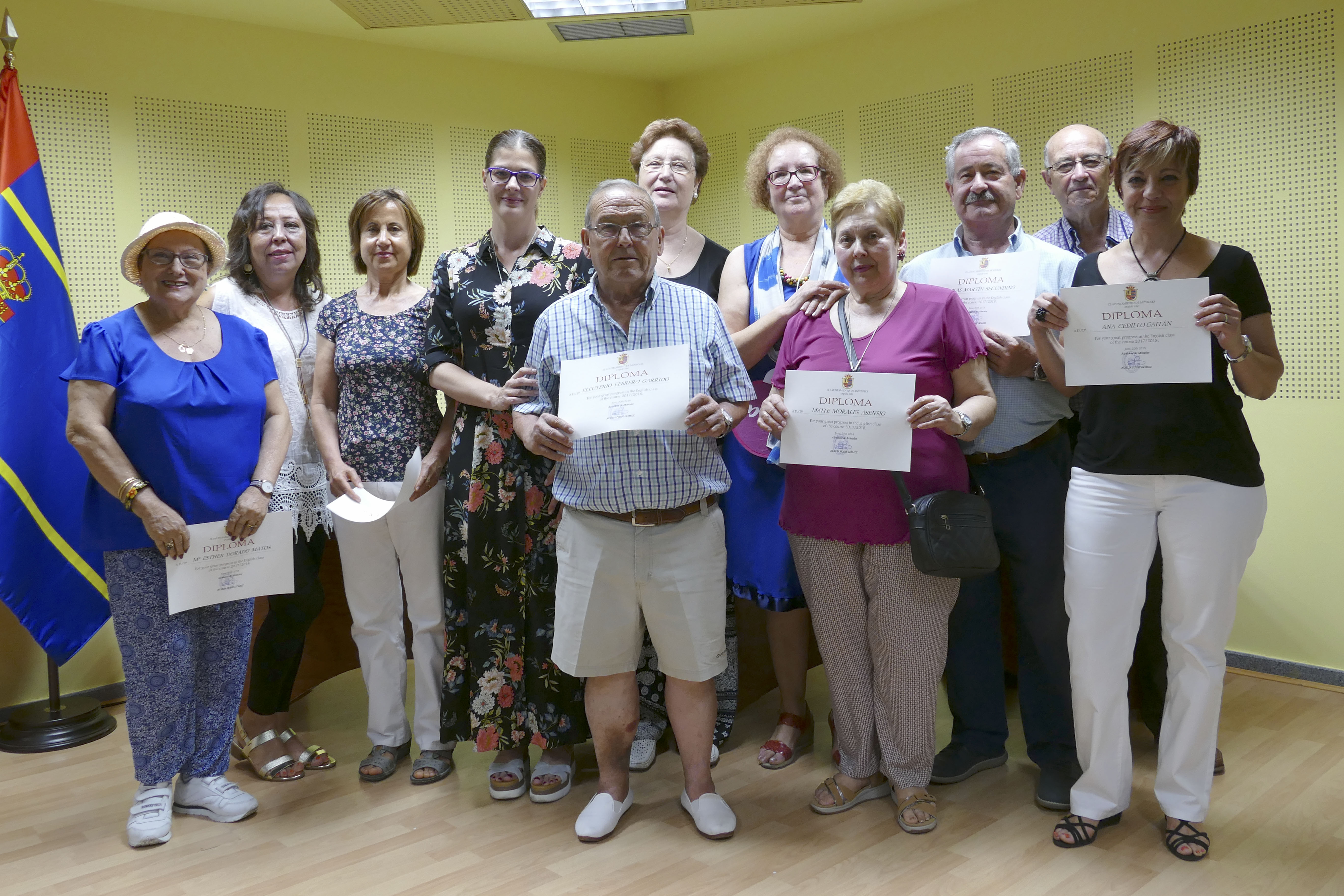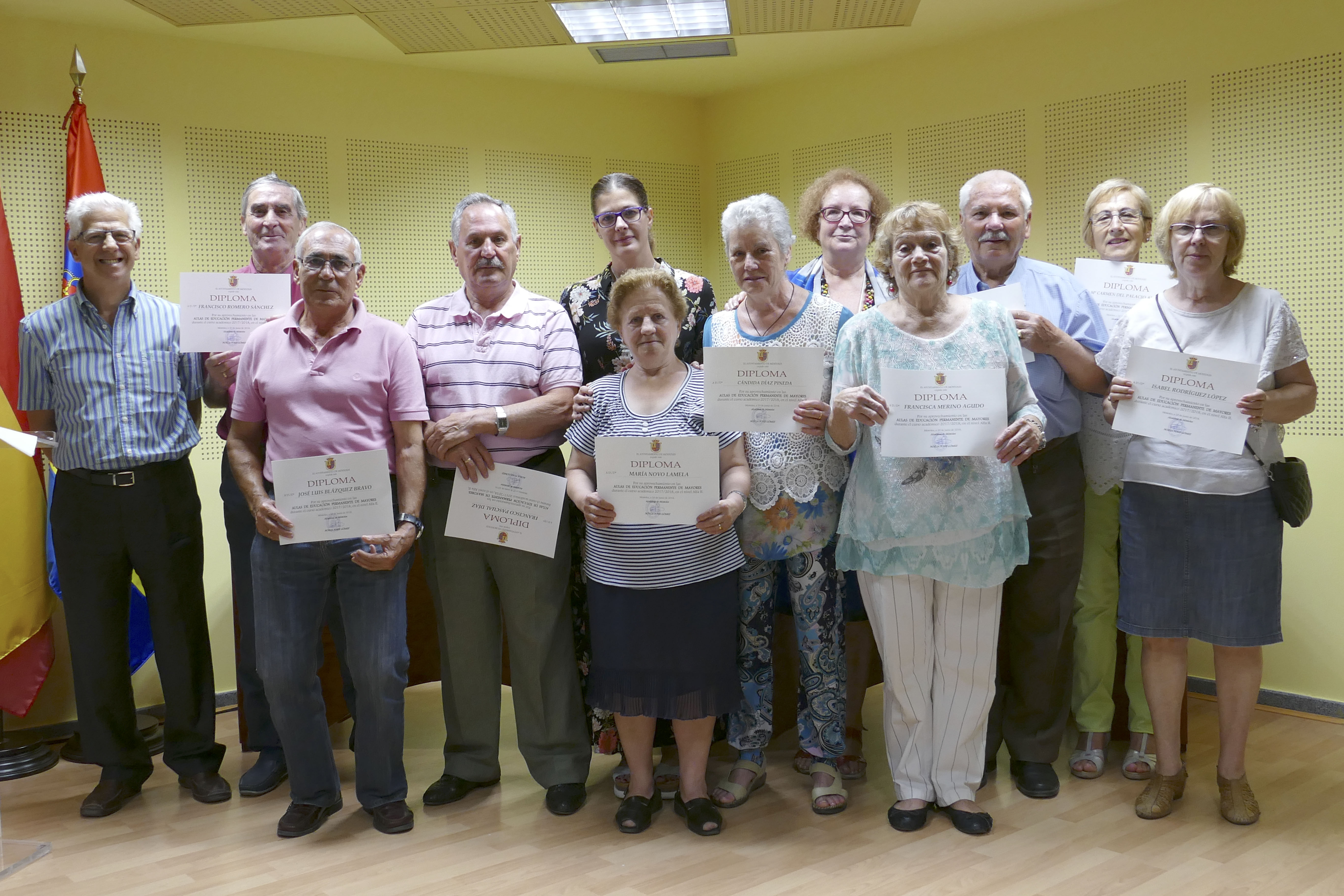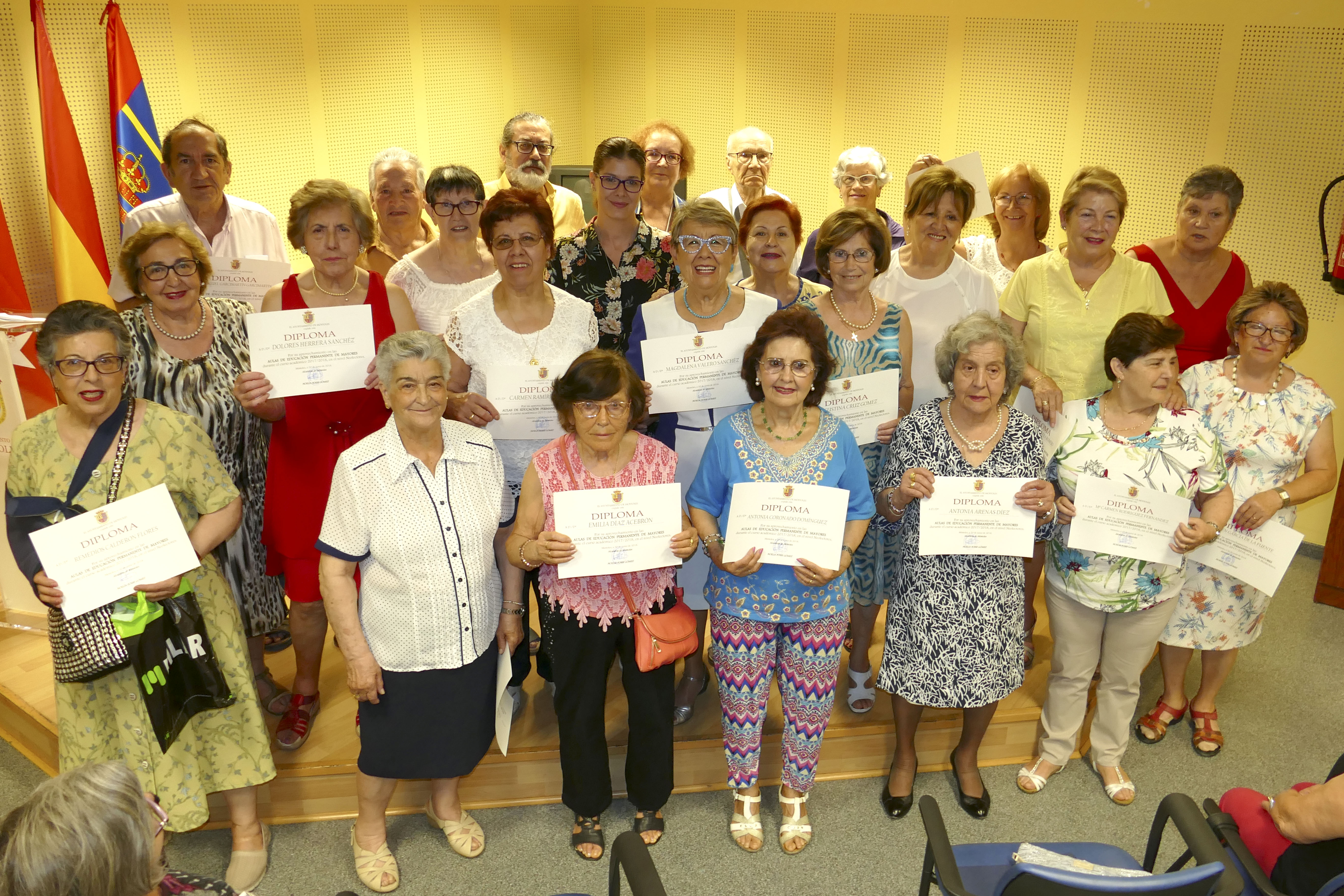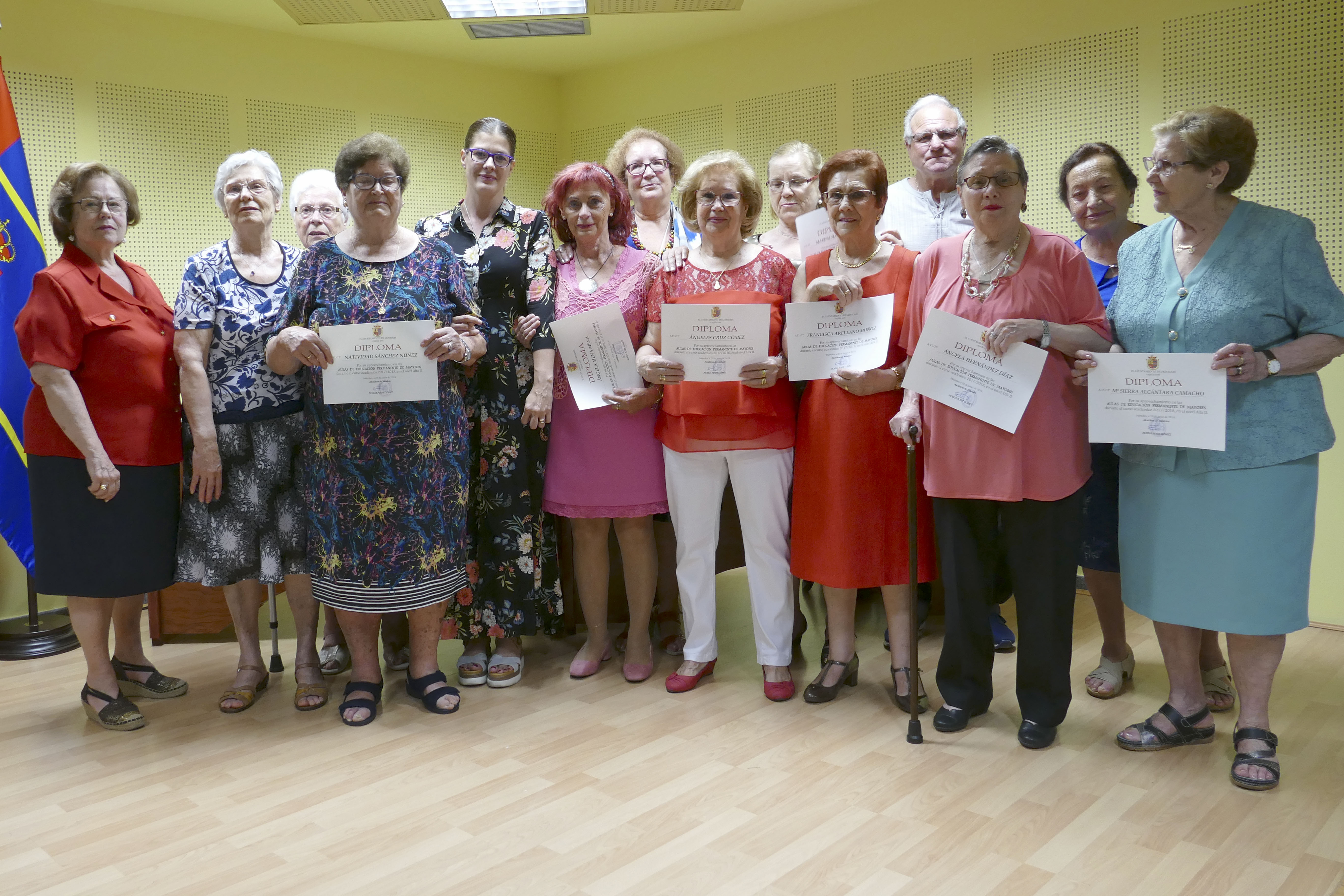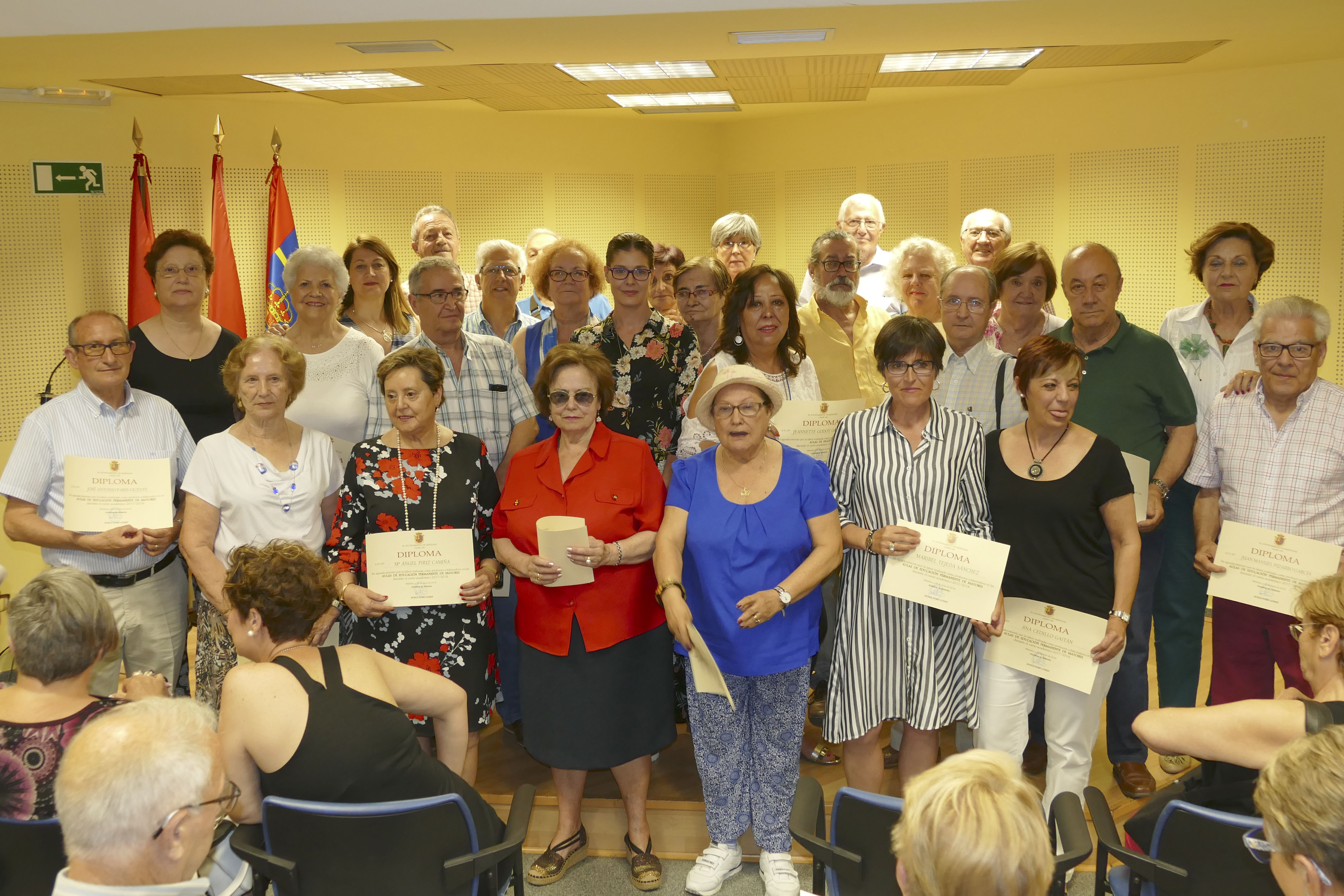 Durante el acto, la Alcaldesa y la Concejala han hecho entrega de los diplomas que acreditan el esfuerzo y la constancia que durante todo el año las y los matriculados en las Aulas de Formación Permanente de Mayores y del Aula de Inglés han realizado. Además, se ha reconocido también por su labor desinteresada a las profesoras y profesores que colaboran en los diferentes talleres que se han desarrollado en todos durante los meses de octubre y junio.