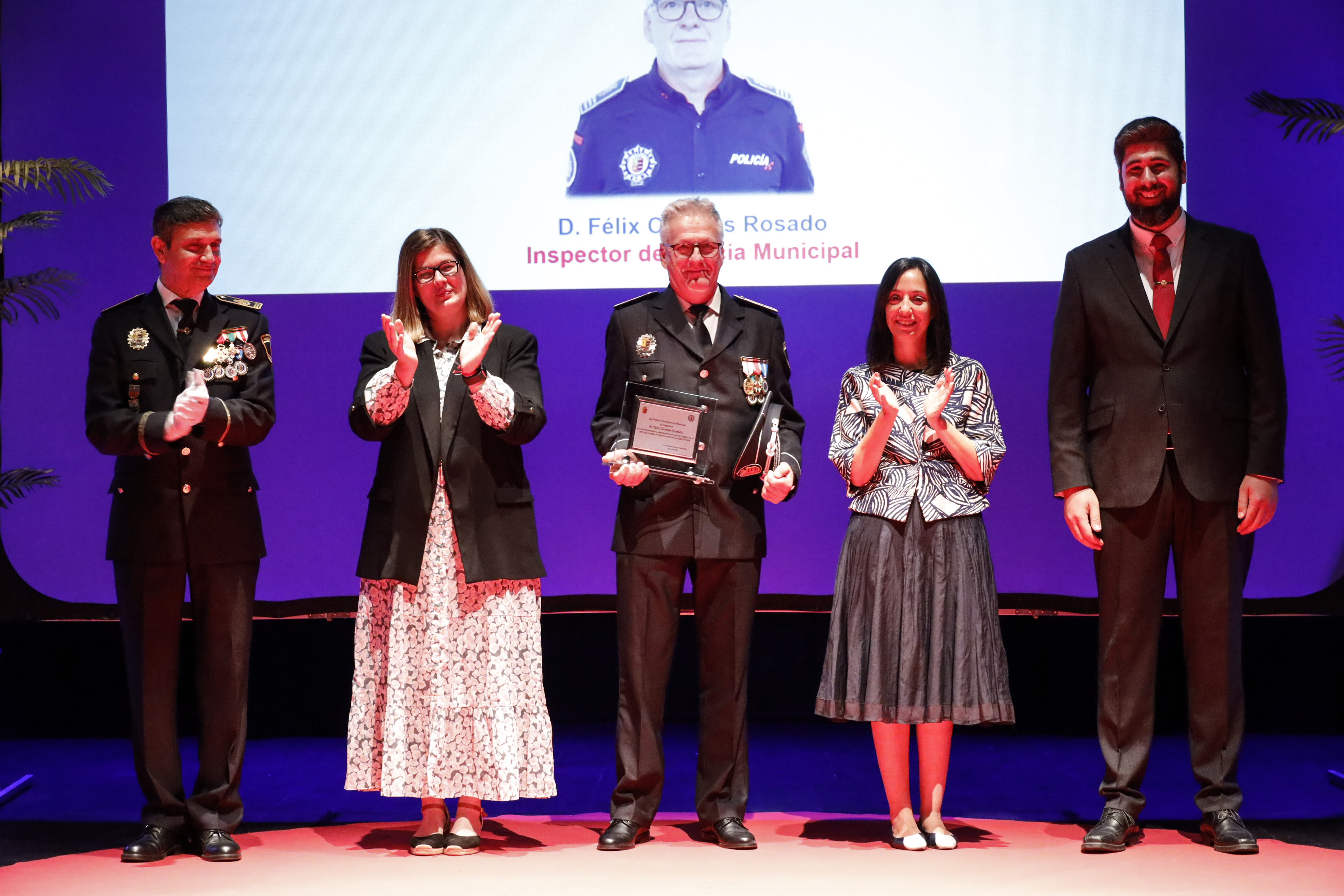 Además de la Delegada del Gobierno, la Medalla de la Policía Municipal la han recibido este año el Inspector Jefe de Policía Nacional, Álvaro Rojas Broncano, el Oficial de Policía Municipal, Javier Rodríguez Castillo, el Oficial de Policía Municipal, Juan Carlos Hurtado, a los Agentes Jorge Alberto Pérez Mende, Miguel de la Fuente Carrillo y Margarita Alejos de la Nogal. Los agentes Óscar Fernández Guillén y Jorge Alberto Pérez Mende han recibido sendos diplomas por la labor realizada.