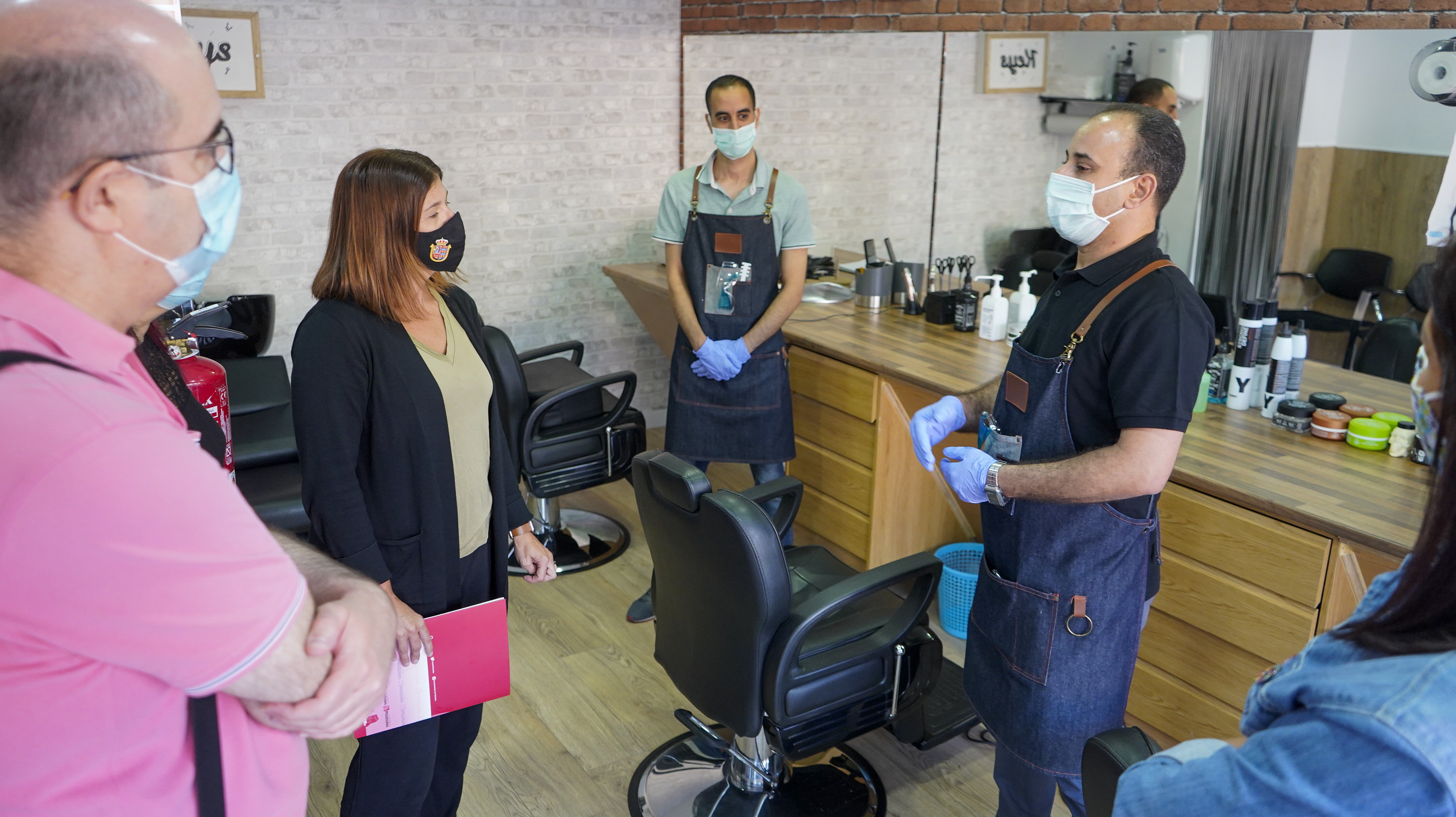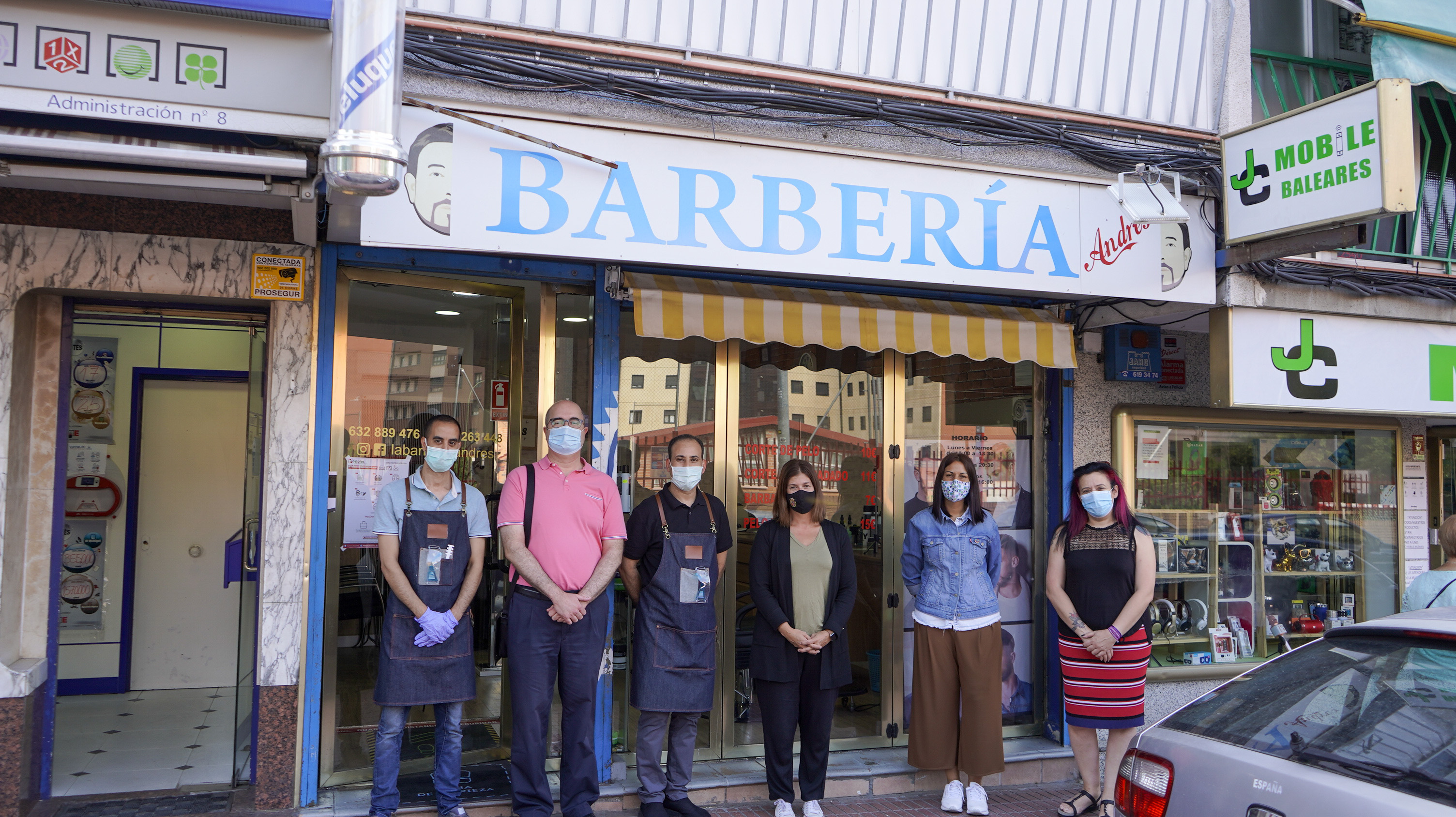 visita Barbería Andrés 1Imagen en alta resolución. Este enlace se abrirá mediante lightbox, puede haber un cambio de contextovisita Barbería Andrés 1La Alcaldesa de Móstoles, Noelia Posse, acompañada por la Concejala de Presidencia, Rebeca Prieto, el Concejal Presidente la Junta de Distrito 3, Aitor Perlines, y la Portavoz de Podemos y Presidenta de la Comisión Especial de Estudio y Dirección de la Estrategia de Salida de la crisis provocada por el coronavirus, Mónica Monterreal, ha visitado la Barbería Andrés. Uno de los negocios de la ciudad al que hoy le han entregado el sello de comercio seguro, en reconocimiento a su esfuerzo para aplicar todos los protocolos exigidos para garantizar el bienestar de los trabajadores y los clientes.