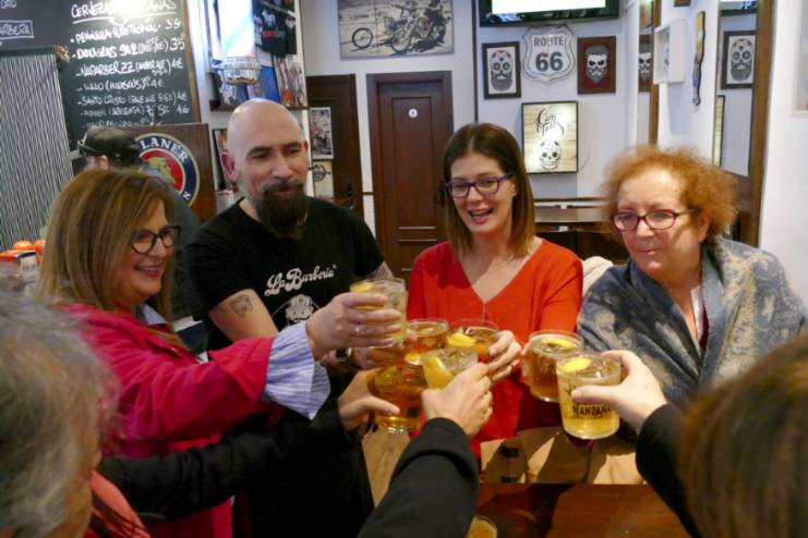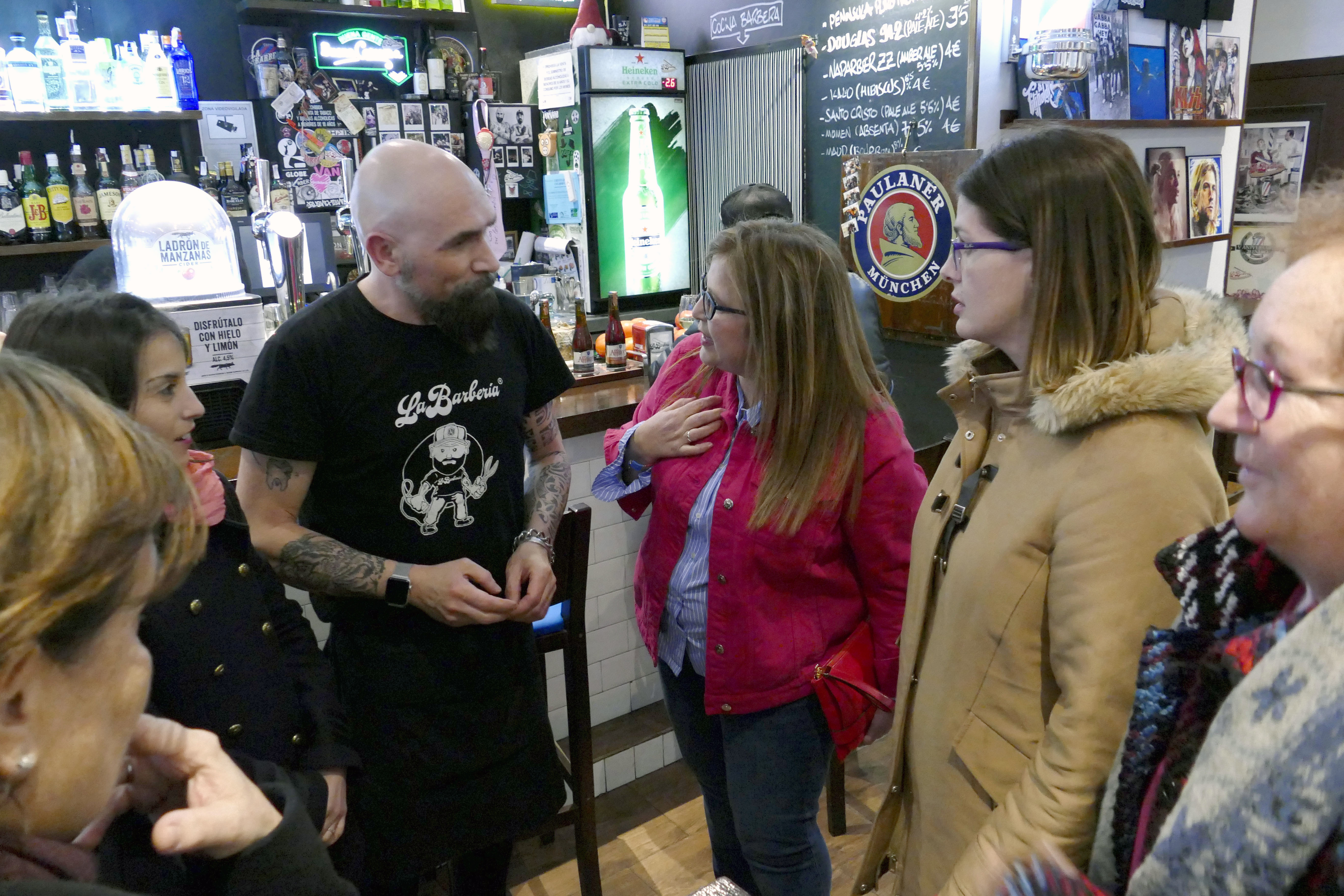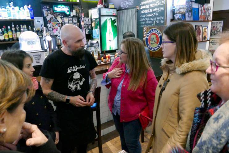 Finalmente, el tercer comercio visitado ha sido el restaurante la Barbería, un lugar de asueto donde le han mostrado a la Alcaldesa sus especialidades culinarias mientras disfrutaron de la buena música.