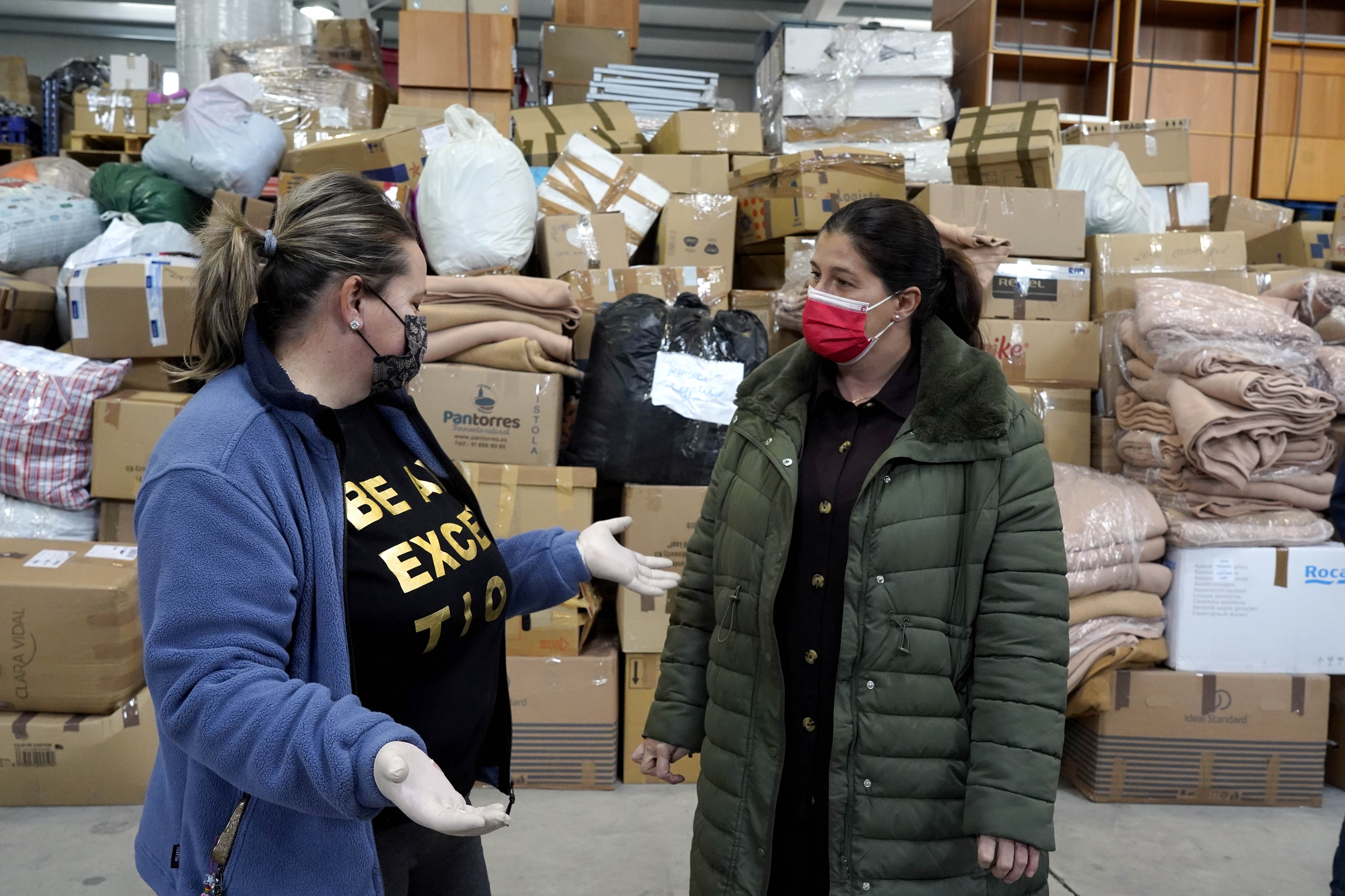 La Alcaldesa de Móstoles visita la nave municipal en la que la Asociación “Por El Futuro de Ucrania” almacena y envía ayuda a los ucranianos