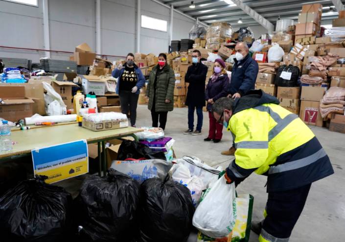 La Alcaldesa de Móstoles, Noelia Posse, acompañada por el Teniente de Alcaldesa, David Muñoz y la Concejala de Igualdad, Lola Triviño, ha visitado la nave municipal en la que la Asociación "Por El Futuro de Ucrania", está almacenando, clasificando y enviando a Ucrania todas las ayudas que están siendo donadas por la ciudadanía de Móstoles a través de las Juntas de Distrito del Municipio y en la Oficina de Atención al Vecino.