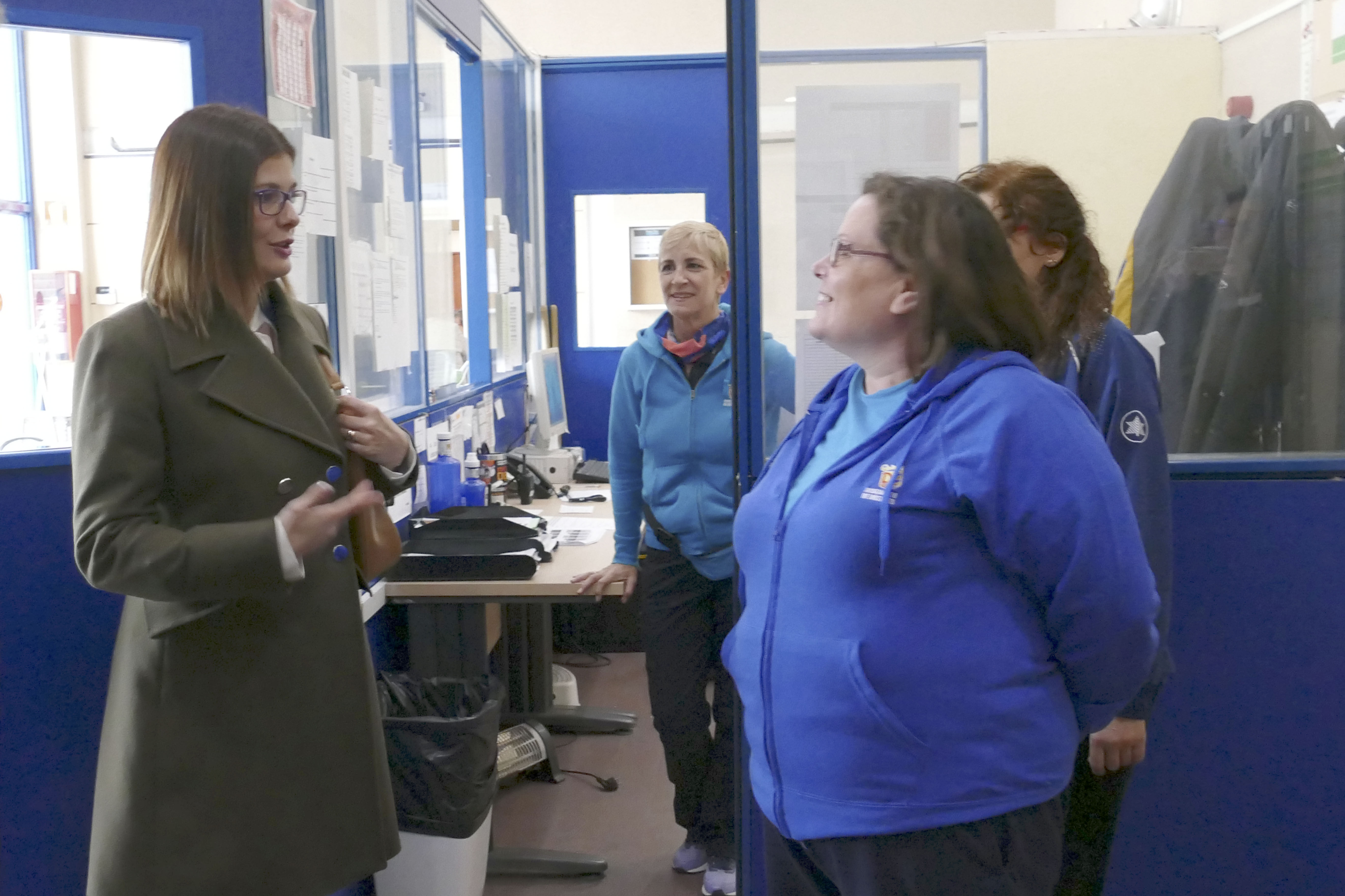 La alcaldesa de Móstoles visita a los trabajadores del Complejo Deportivo Villafontana