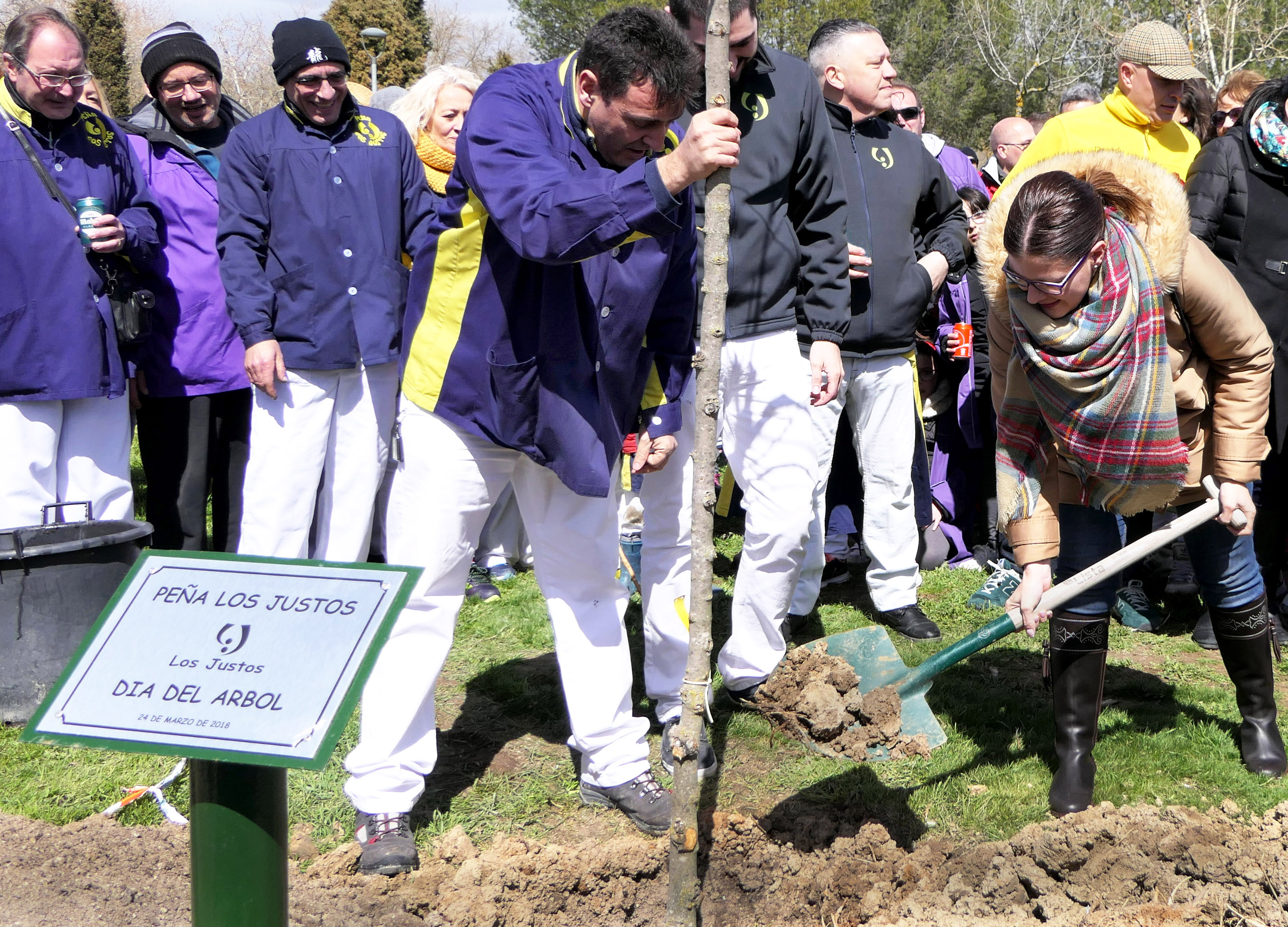 - La Peña Los Justos ha sido la encargada este año de plantar el árbol en la Avenida de las Peñas, en el Parque Natural del Soto.