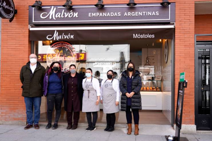 La tienda de empanadas argentinas "Malvón", que ha abierto su primera tienda en Móstoles en la Avenida de la Constitución número 2, de un total de 70 locales repartidos por toda España, ha recibido hoy la visita de la Alcaldesa, Noelia Posse, la Concejala de Empleo y Nuevas Tecnologías, Rebeca Prieto, el presidente de la Junta de Distrito 1 y Concejal de Participación Vecinal y Recursos Humanos, Aitor Perlines, y la portavoz de Podemos, Mónica Monterreal.