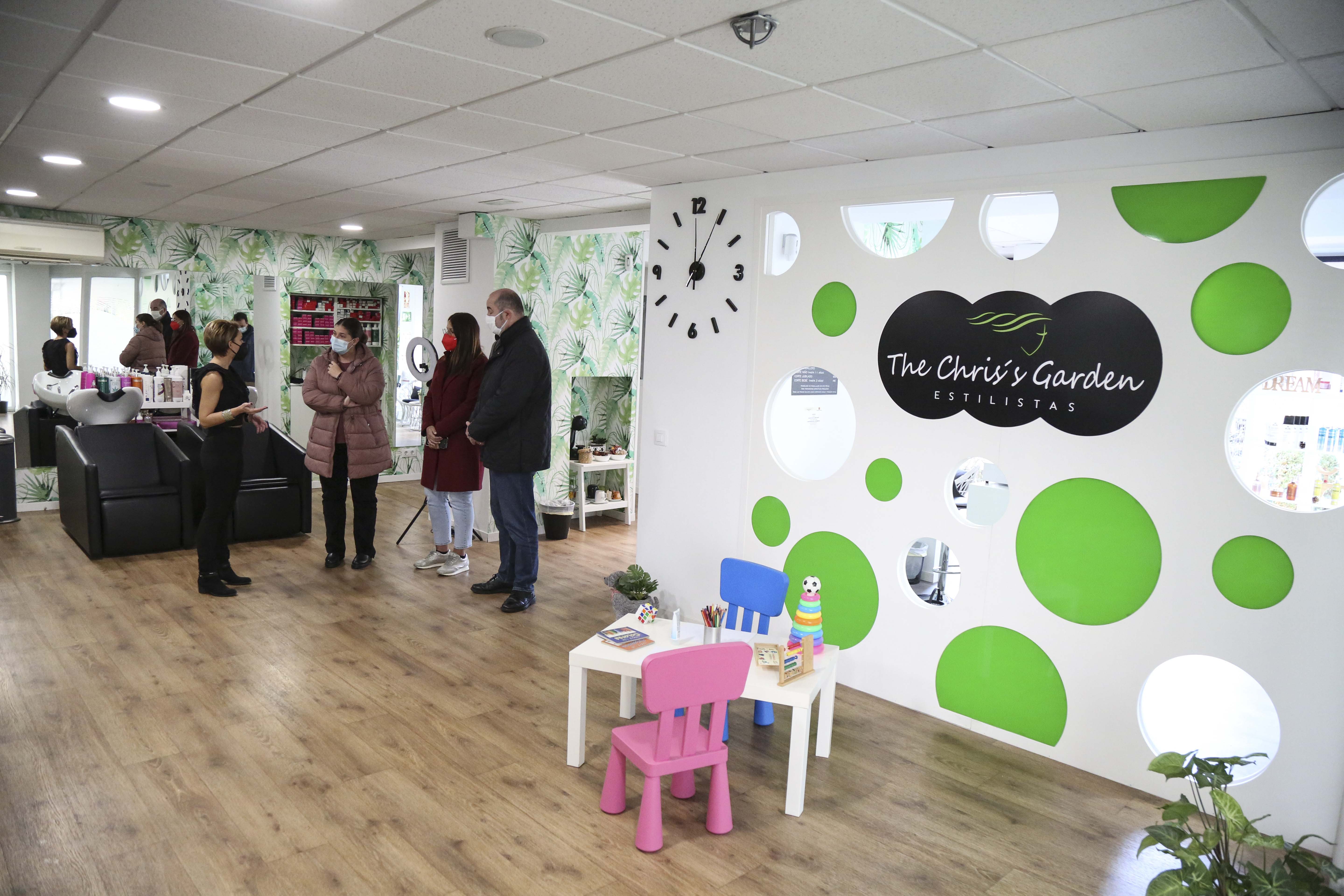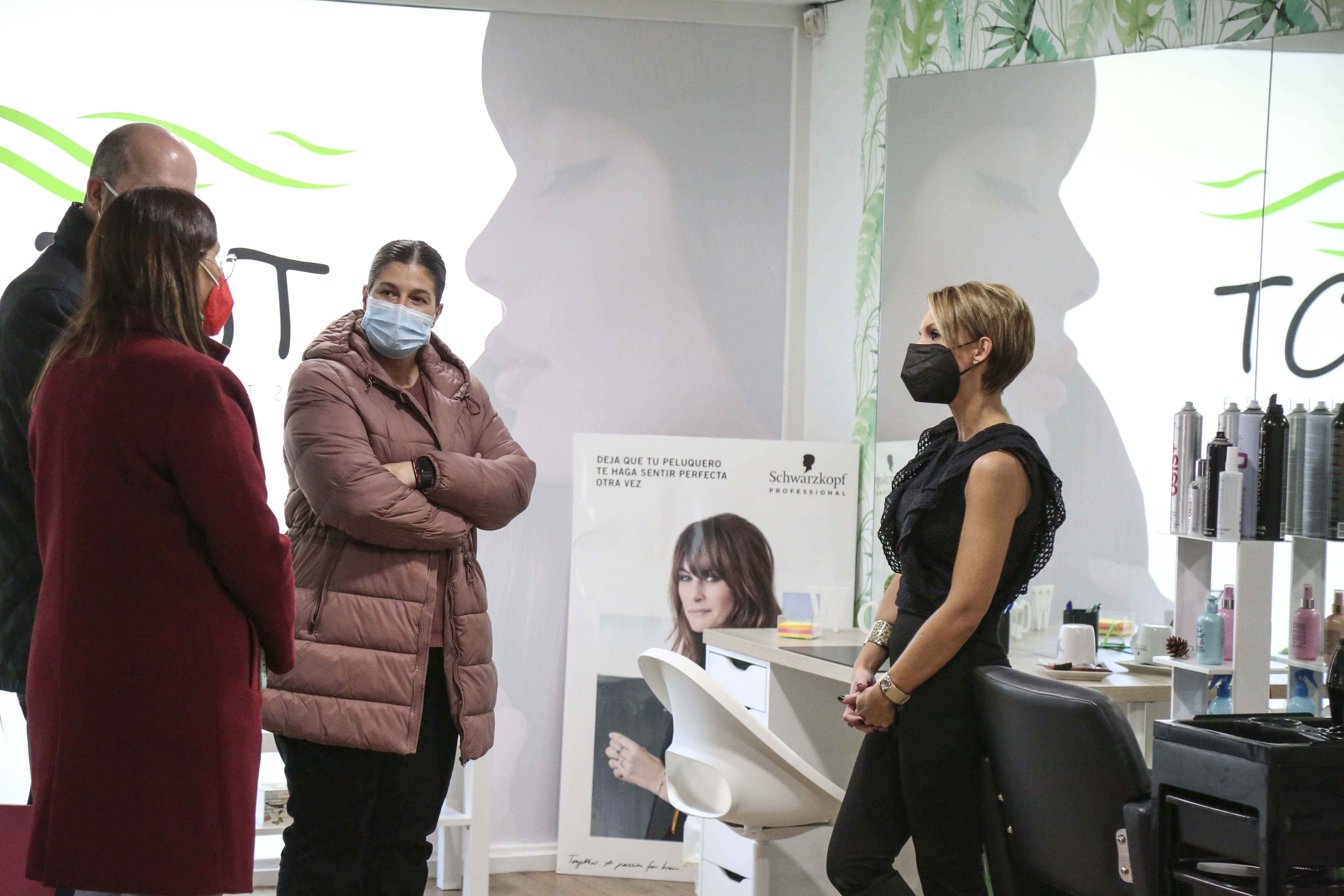 La Alcaldesa visita la peluquería The Chris’s Garden que facilita a sus clientes el teletrabajo en su local