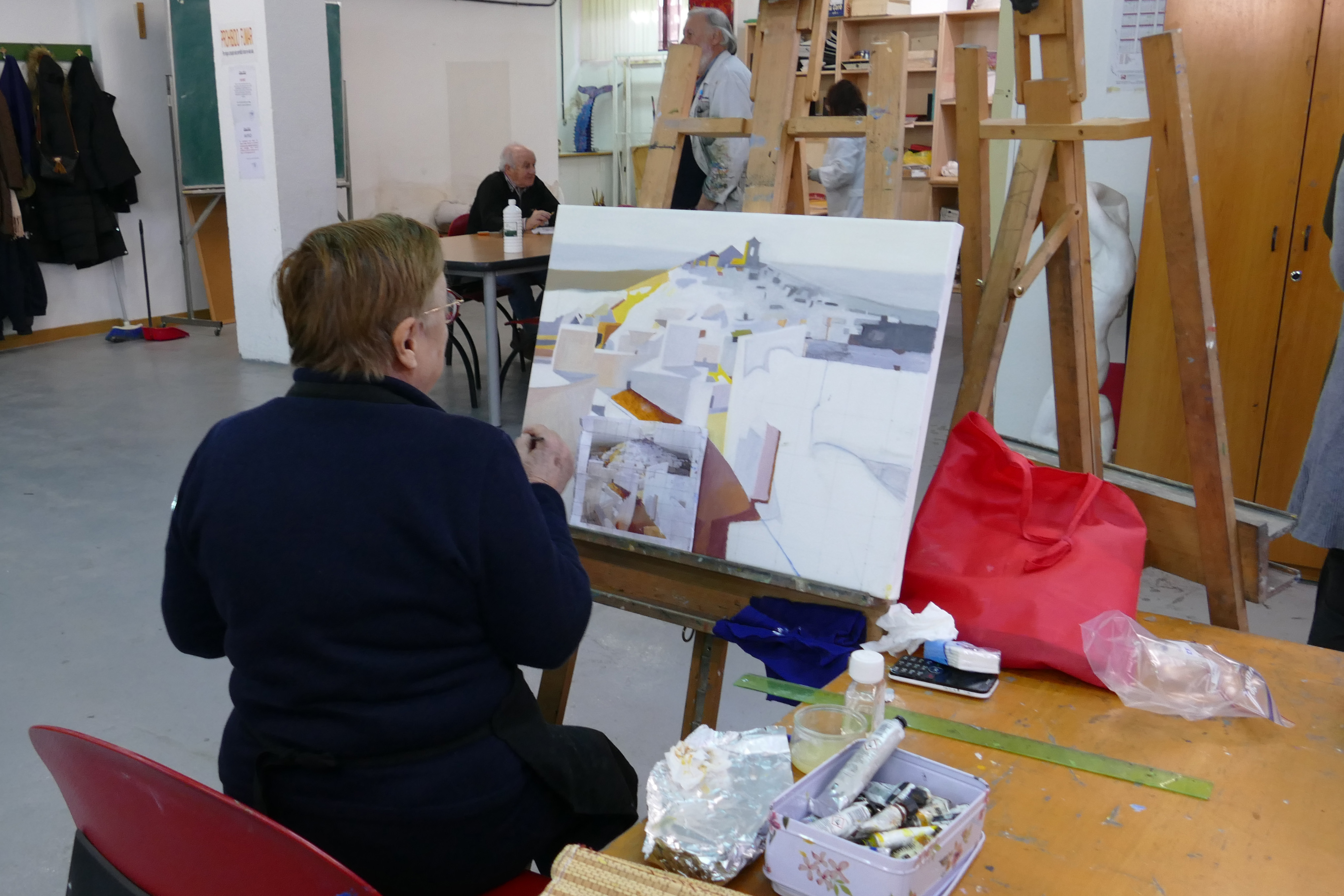 La Alcaldesa visita los talleres de Dibujo, Pintura y Cerámica del Centro Sociocultural Joan Miró