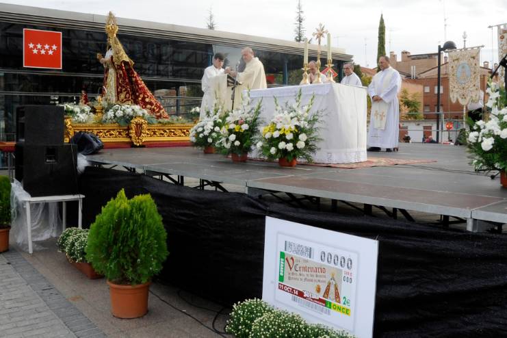 Precisamente este sábado, la Patrona de Móstoles ha sido la imagen del cupón de la ONCE, del que se han puesto a la venta 5,5 millones de boletos en toda España.
