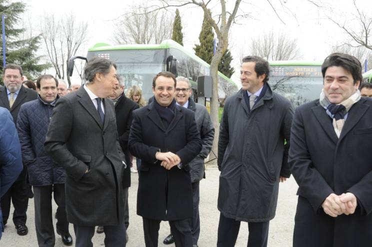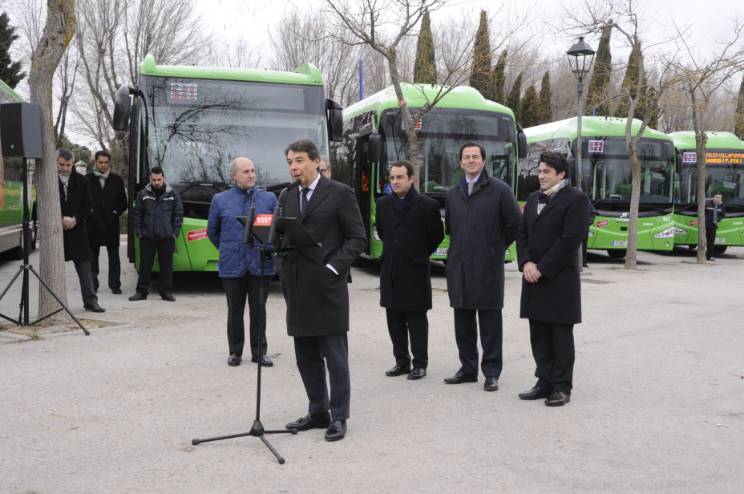 El Presidente de la Comunidad de Madrid, Ignacio González, y el Alcalde de Móstoles, Daniel Ortiz, han presentado la nueva flota de 15 autobuses incorporada por la empresa Arriva De Blas a las líneas de transporte urbano del municipio.