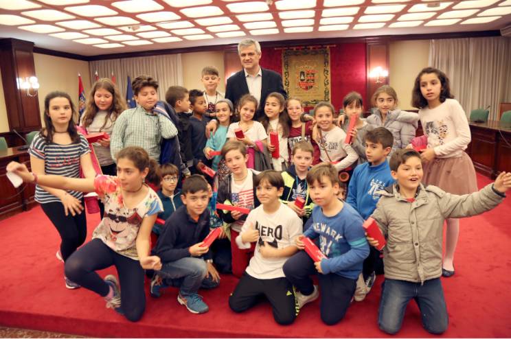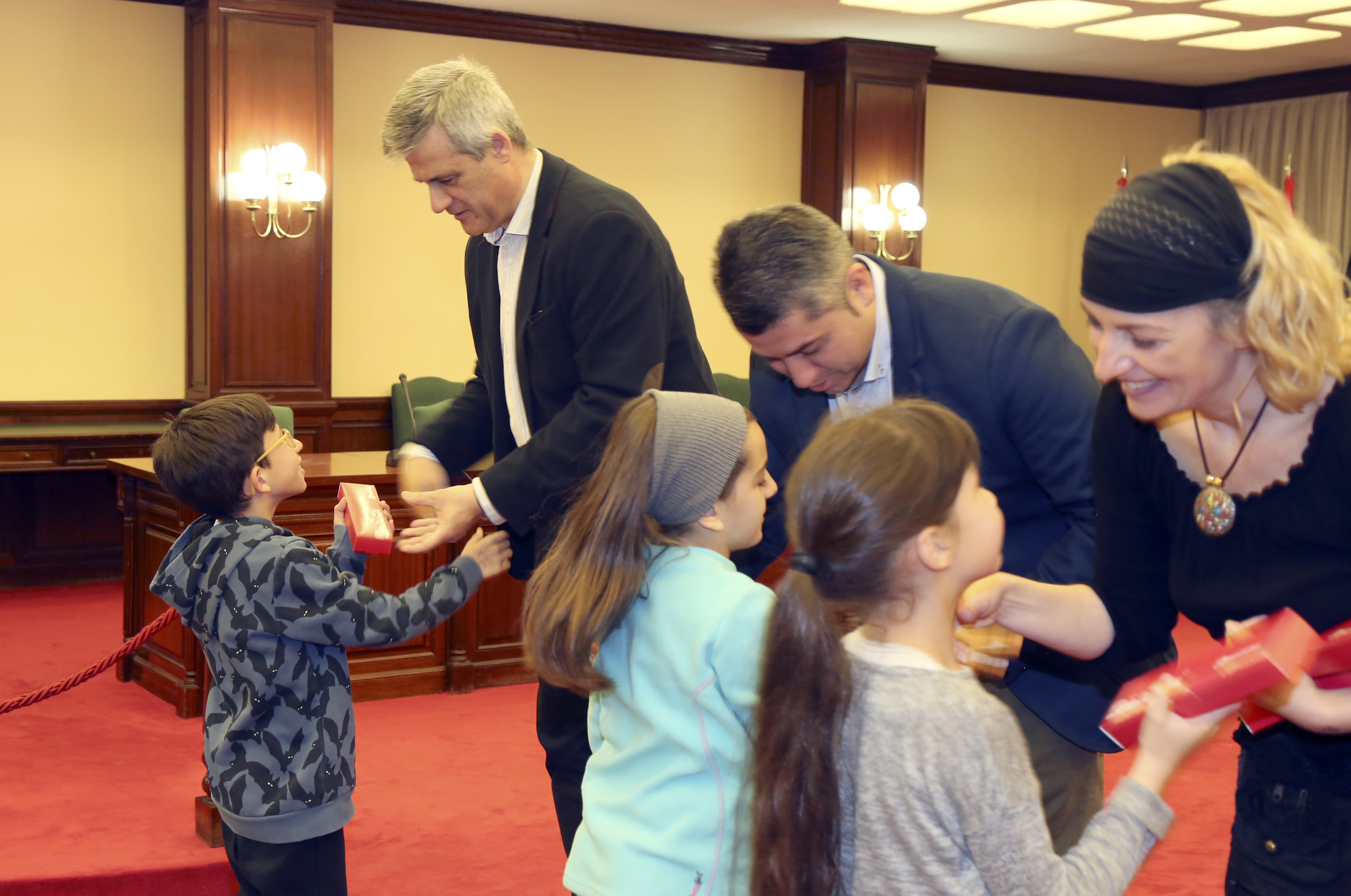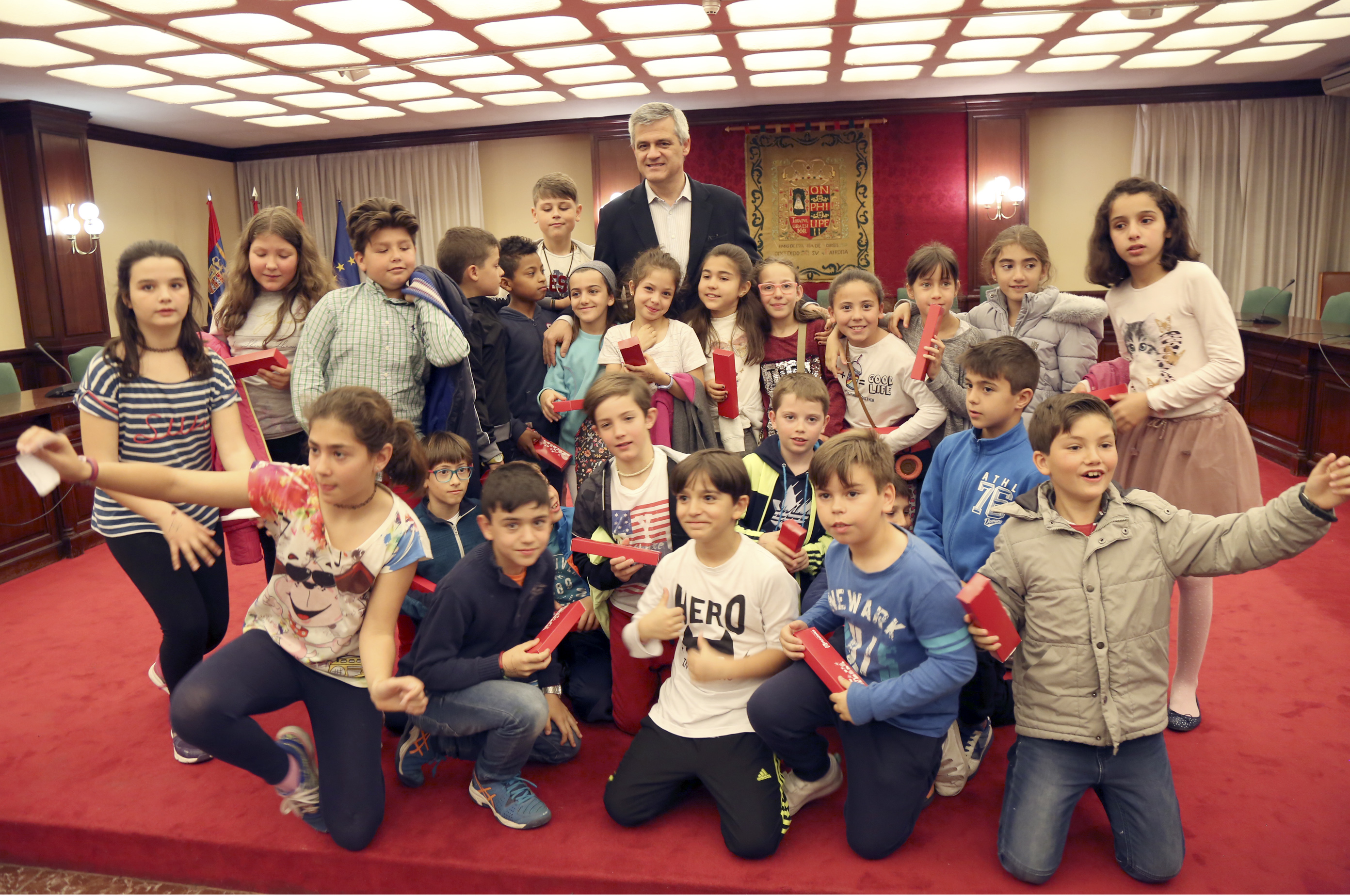 Imagen en alta resolución. Este enlace se abrirá mediante lightbox, puede haber un cambio de contextoEl alcalde de Móstoles, David Lucas, acompañado por la concejala de Educación, Isabel Cruceta, y el concejal de Presidencia, Seguridad Ciudadana y Movilidad, Roberto Sánchez, han recibido esta mañana en el salón de plenos del Ayuntamiento a 48 escolares del C.P. García Lorca, que han aprovechado la ocasión para conocer el funcionamiento de la institución municipal y de plantear al regidor algunas de sus inquietudes y propuestas.