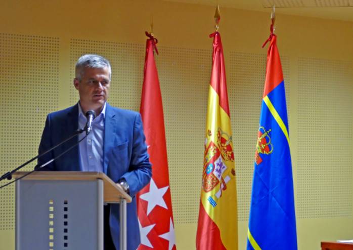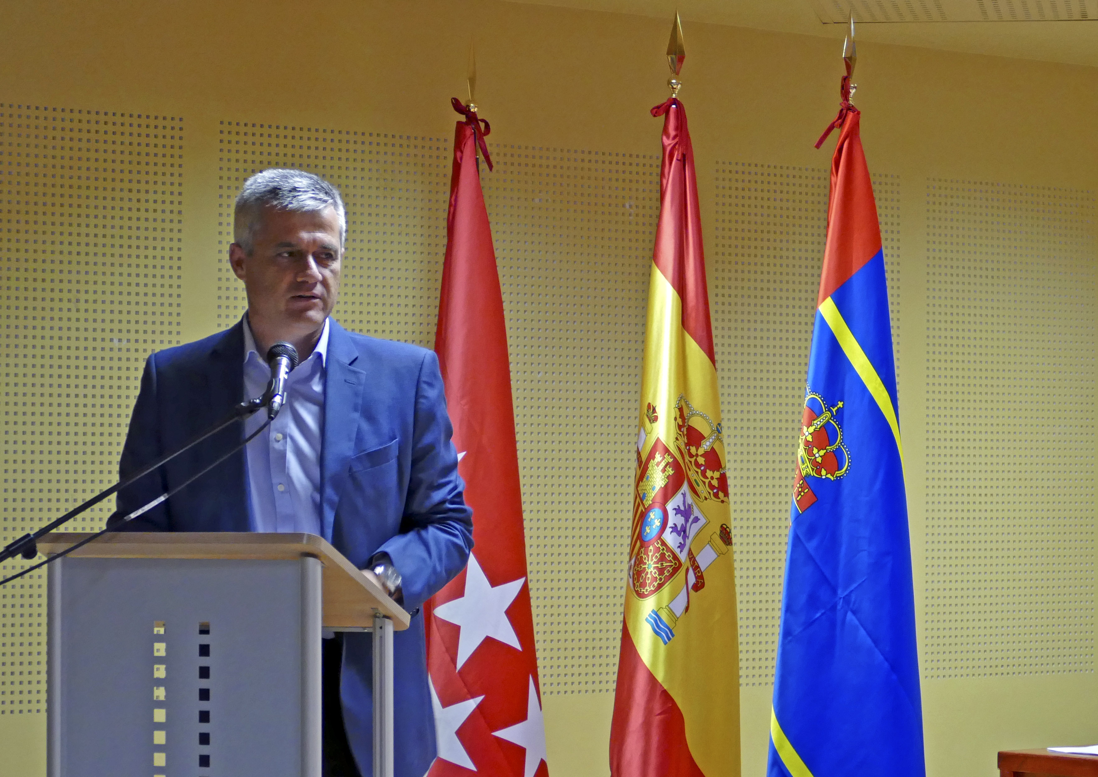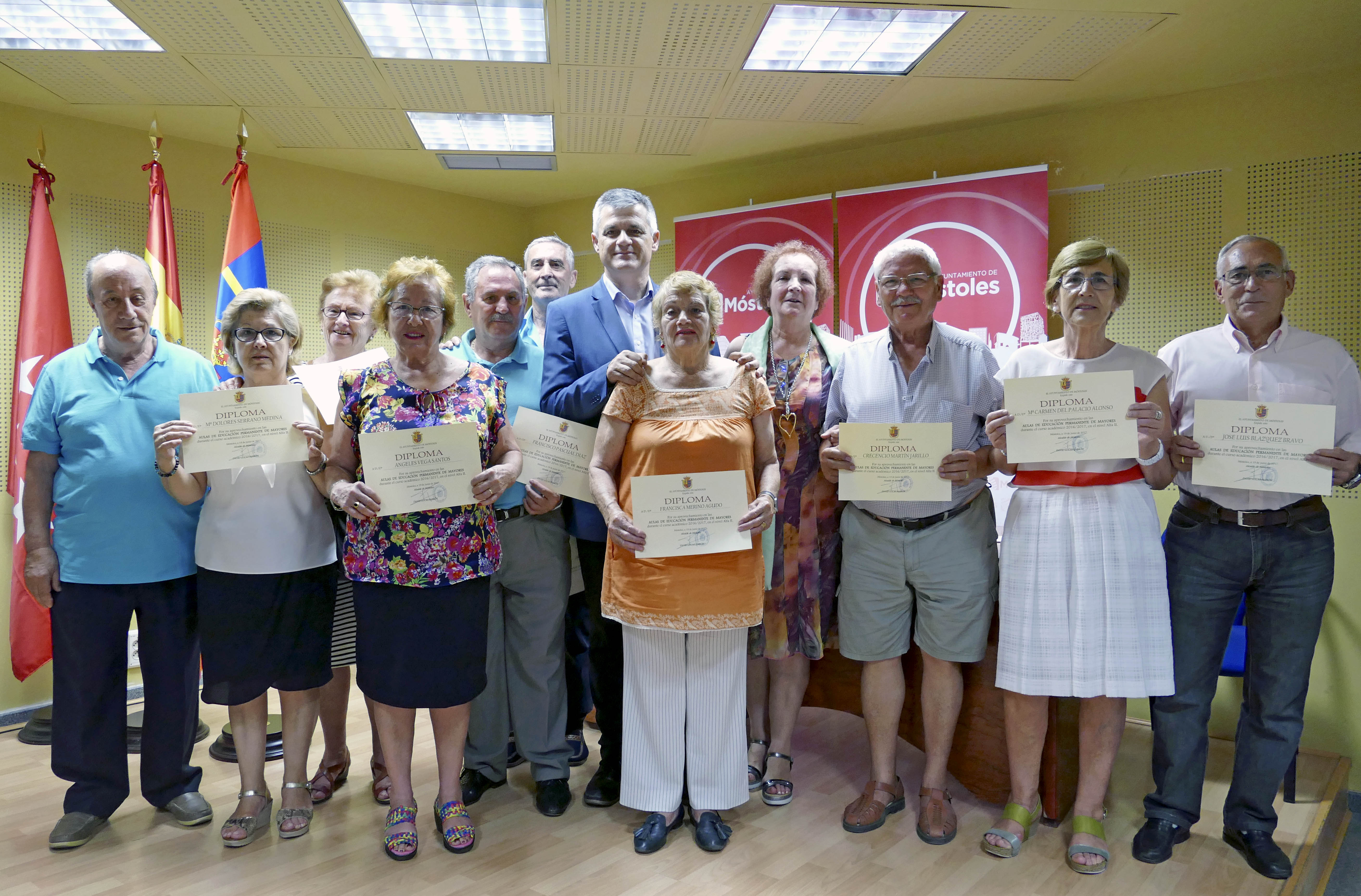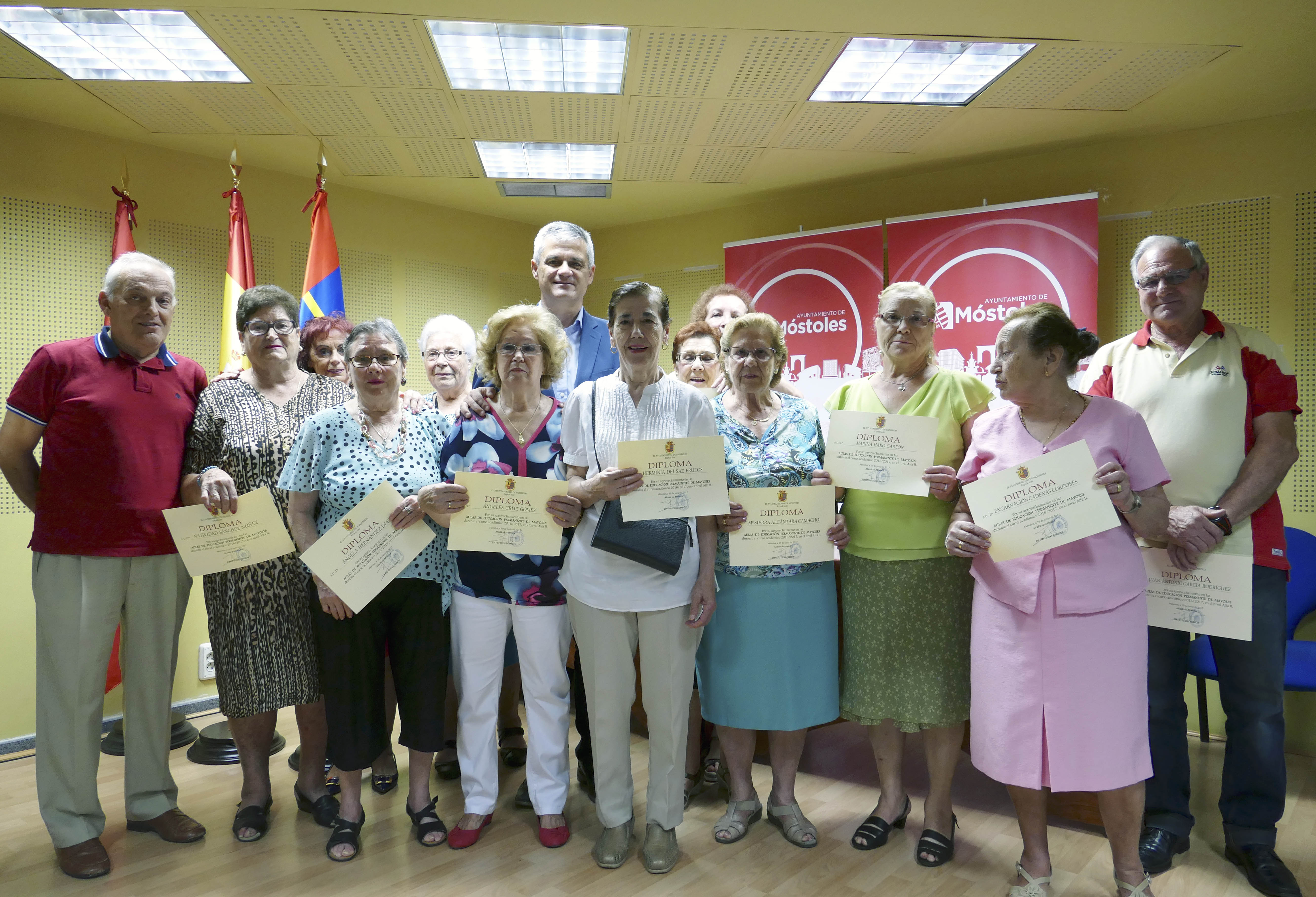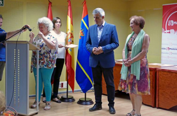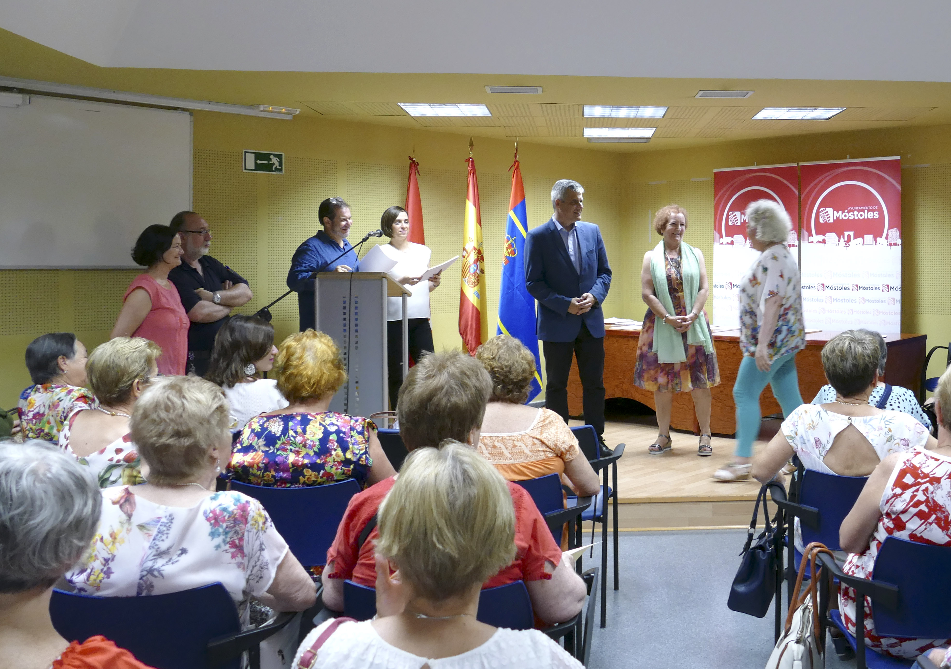 Imagen en alta resolución. Este enlace se abrirá mediante lightbox, puede haber un cambio de contextoEl alcalde de Móstoles, David Lucas, y la concejala de Igualdad, Sanidad y Mayores,Ana María Rodrigo, han asistido esta mañana al acto de clausura de las Aulas de Formación Permanente de Mayores, en el salón de actos de Participación Ciudadana.