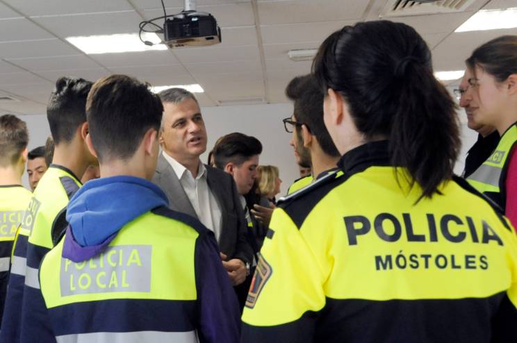 El alcalde de Móstoles, David Lucas, y el concejal de Presidencia, Seguridad Ciudadana, Movilidad y Comunicación, han entregado los diplomas a los 18 alumnos que ya han participado en el programa, gracias al cual han conocido las actividades diarias que se desarrollan en las diferentes áreas del Cuerpo.