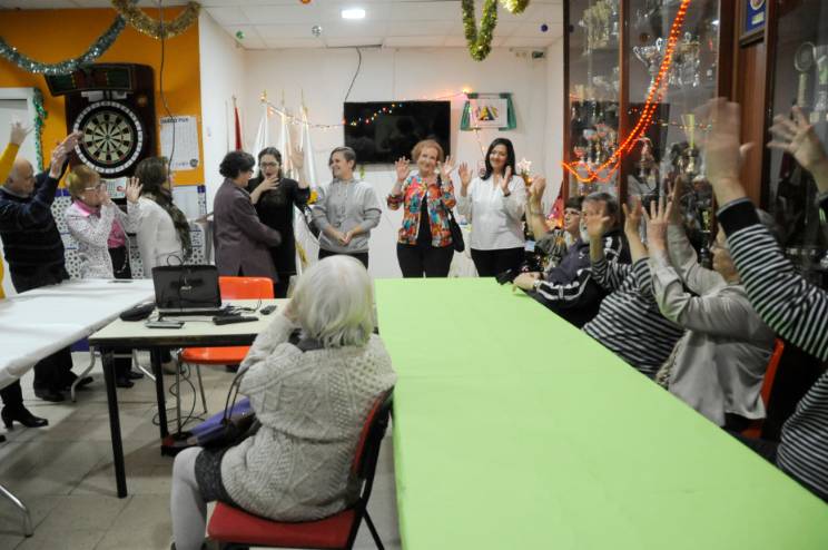 Imagen en alta resolución. Este enlace se abrirá mediante lightbox, puede haber un cambio de contextoLa concejala de Igualdad, Sanidad y Mayores, Ana María Rodrigo, acudió este sábado a la tradicional celebración navideña con un vino español de las juntas directivas de las asociaciones Julumaca y Club Deportivo Sordos Julumaca. Ambas entidades realizan una gran labor de integración, apoyo social, servicios sociales y actividades de ocio y tiempo libre, cultura y educación para las personas sordas de Móstoles.