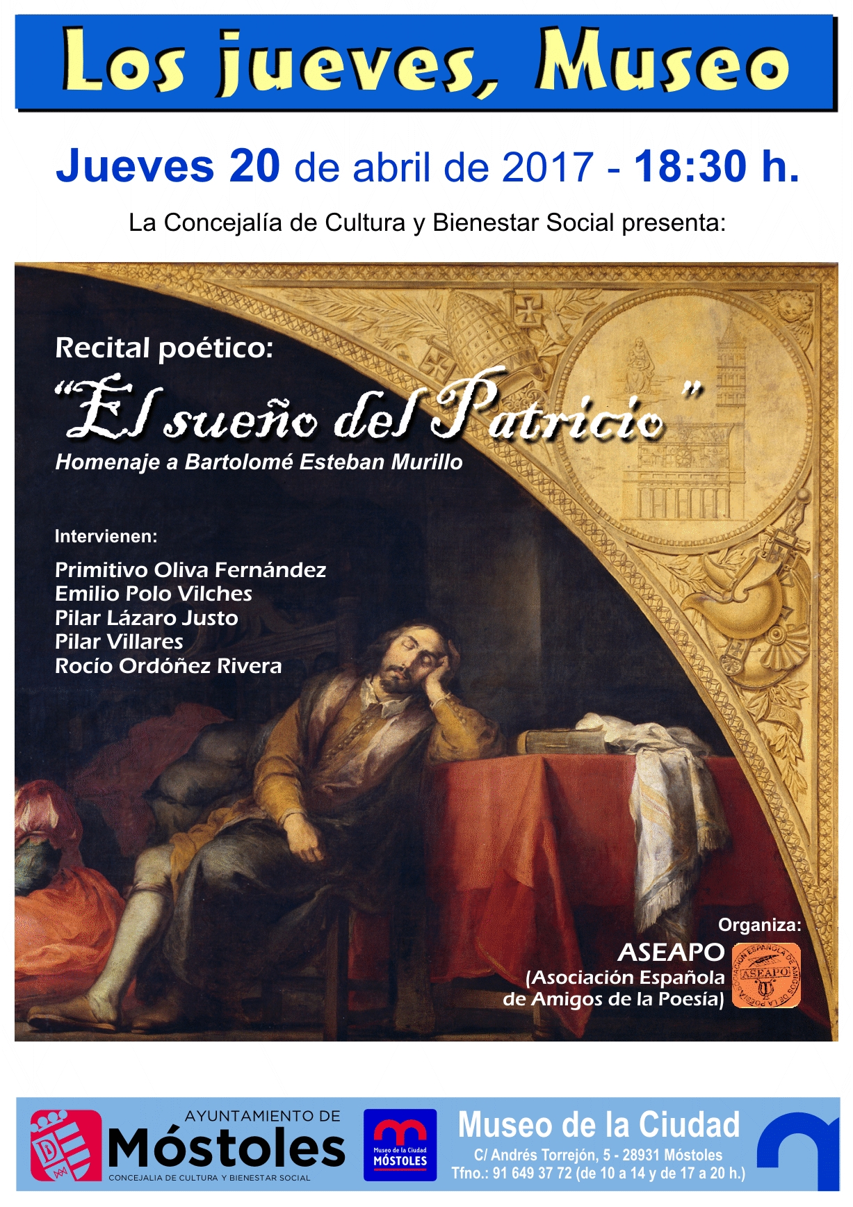 Imagen en alta resolución. Este enlace se abrirá mediante lightbox, puede haber un cambio de contextoLa Asociación Española de Amigos de la Poesía (ASEAPO) rendirá el próximo jueves día 20 de abril, a las 18.30 horas, en el Museo de la Ciudad, un homenaje a Bartolomé Esteban Murillo, con motivo del IV Centenario de su nacimiento.