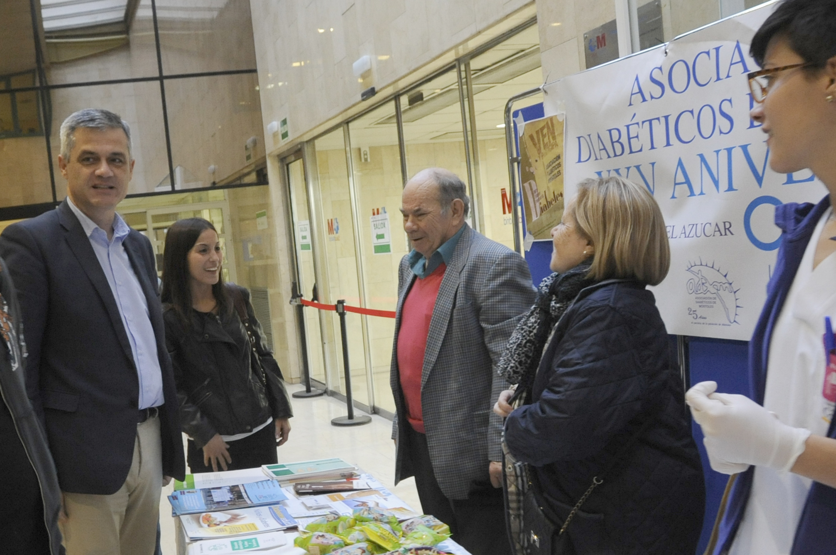 El Alcalde, David Lucas, ha visitado esta mañana acompañado por Jéssica Antolín, Primera Teniente de Alcalde, la mesa informativa instalada por la Asociación de Diabéticos de Móstoles en el Hospital Universitario de Móstoles, en el marco del Día Mundial de la Diabetes (que se celebra todos 14 de noviembre) y en la que se han realizado medidas de glucosa a todas las personas que se han acercado.