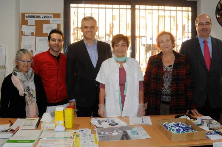 Imagen en alta resolución. Este enlace se abrirá mediante lightbox, puede haber un cambio de contextoEl Alcalde, David Lucas, ha visitado esta mañana acompañado por Ana María Rodrigo, Concejala de Igualdad, Sanidad y Mayores, la mesa informativa instalada por la Asociación de Diabéticos de Móstoles en el Centro de Mayores Juan XXIII en el marco del Día Mundial de la Diabetes (que se celebra todos 14 de noviembre) y en la que se han realizado medidas de glucosa a todas las personas que se han acercado.