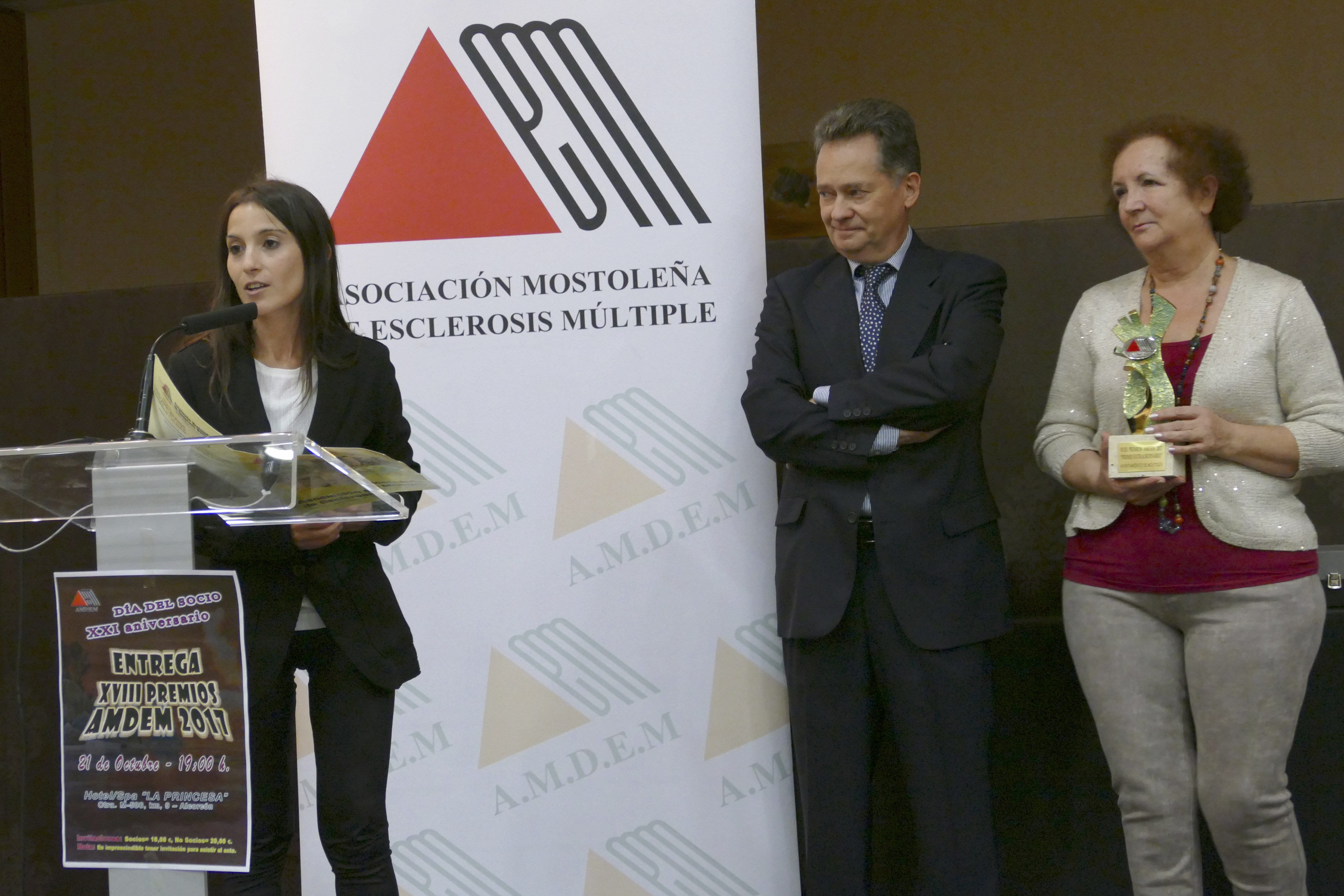 Durante el acto conmemorativo, celebrado el sábado 21 de octubre en el hotel Spa `La Princesa´, la asociación hizo entrega de la XVIII edición de los PREMIOS AMDEM, entre los que se encontraba el `Premio Extraordinario´ concedido al Ayuntamiento de Móstoles, "por su "comprensión, ayuda y colaboración, facilitando la concesión de una parcela para que llegue a buen puerto la construcción de un Centro de Atención Diurna para los afectados de Esclerosis Múltiple".