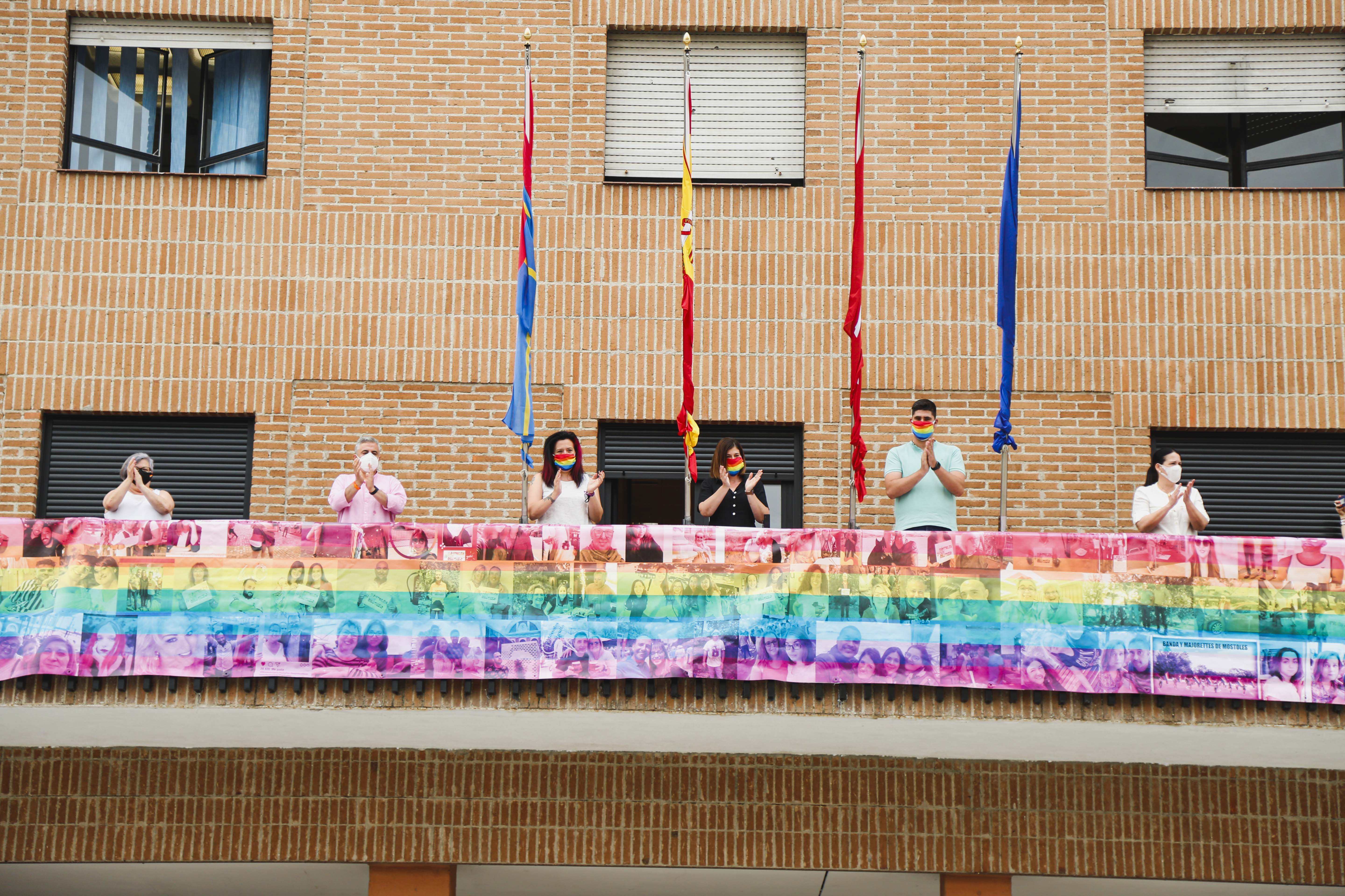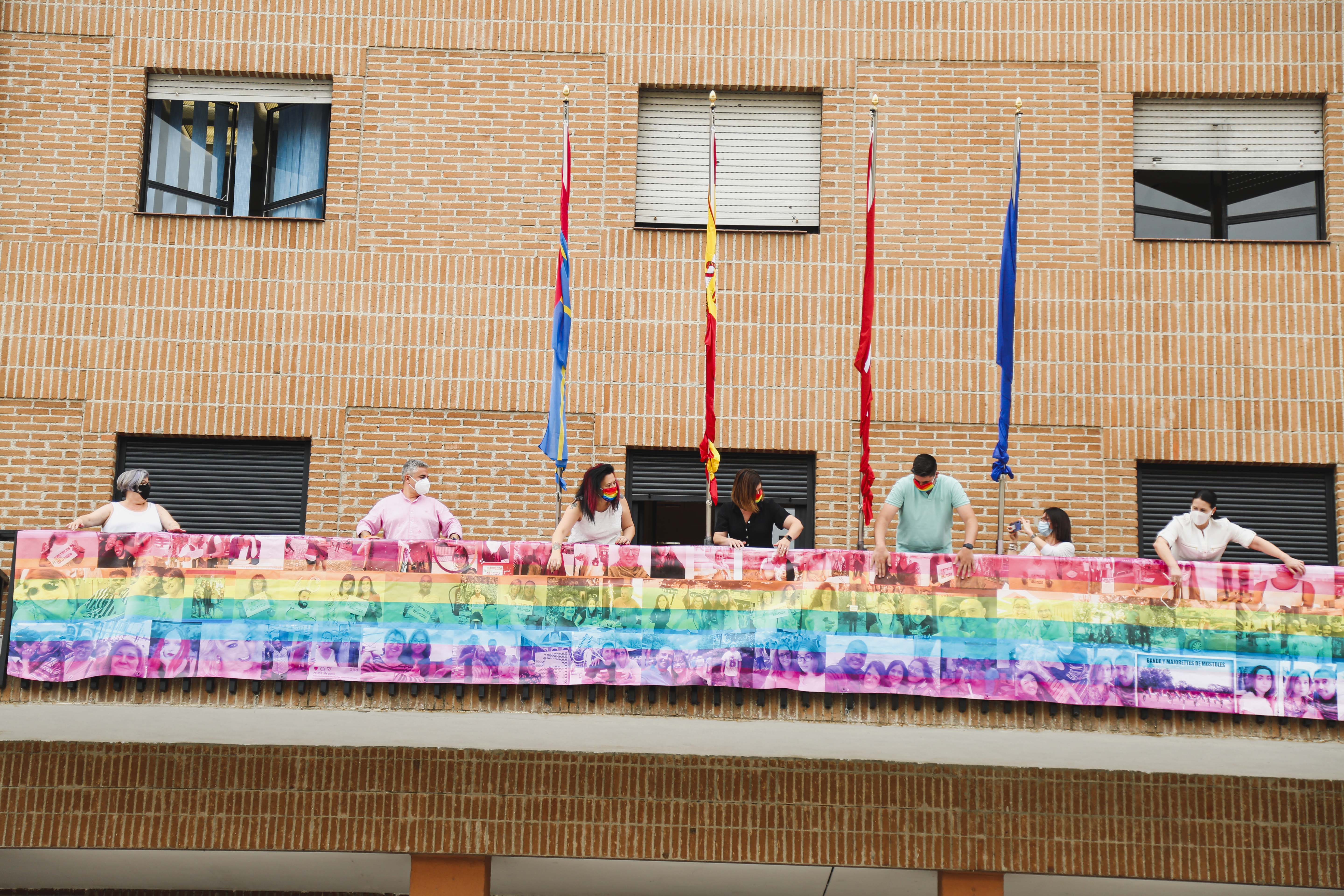 Imagen en alta resolución. Este enlace se abrirá mediante lightbox, puede haber un cambio de contextoCon motivo de la celebración del Día Internacional del Orgullo LGTBI y como muestra de apoyo a la lucha por los derechos de este colectivo, esta mañana se ha desplegado en el balcón de la Casa Consistorial, una pancarta arcoíris formada con las fotografías de las mostoleñas y mostoleños que participaron en 2019 en la iniciativa #MostolesconOrgullo promovida desde la Concejalía de Igualdad.
