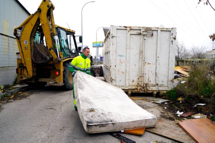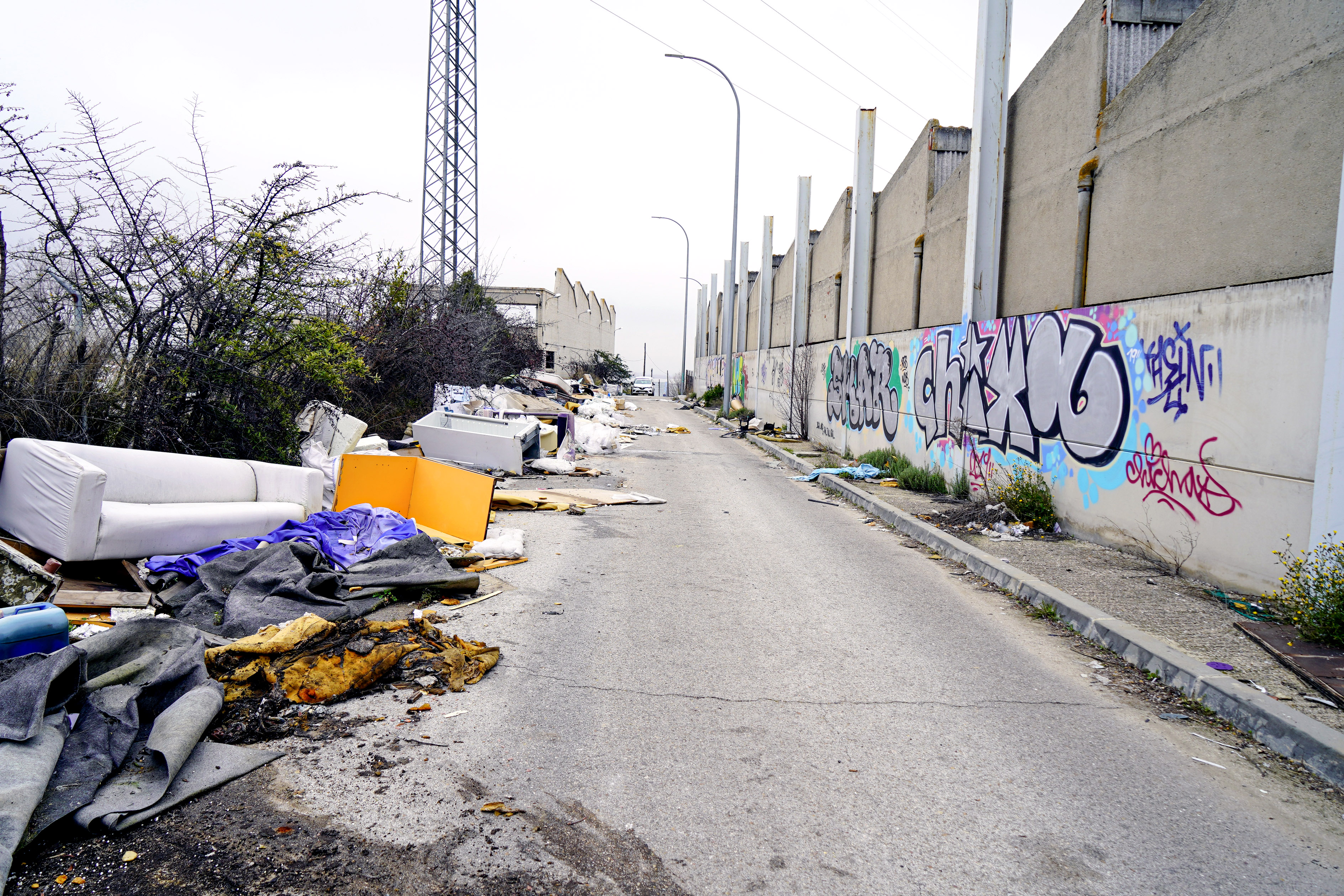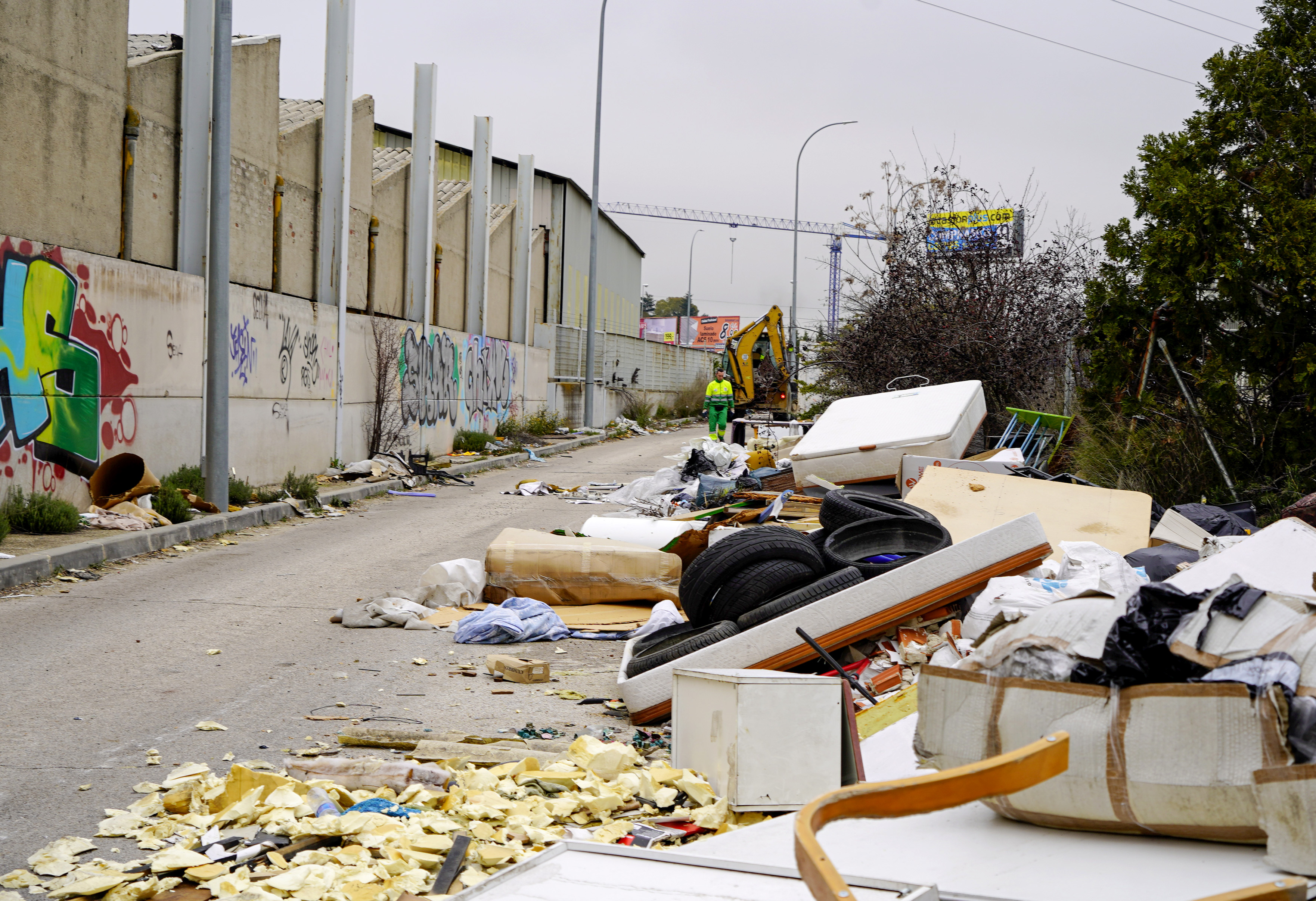 Imagen en alta resolución. Este enlace se abrirá mediante lightbox, puede haber un cambio de contextoEl Ayuntamiento de Móstoles inicia la retirada de los residuos de la calle Puerto de Almenara en el Polígono de La Nieves. Se prevé que la limpieza de la vía, la única zona de este vertedero ilegal sobre la que el Consistorio tiene competencias, pueda durar varios días.