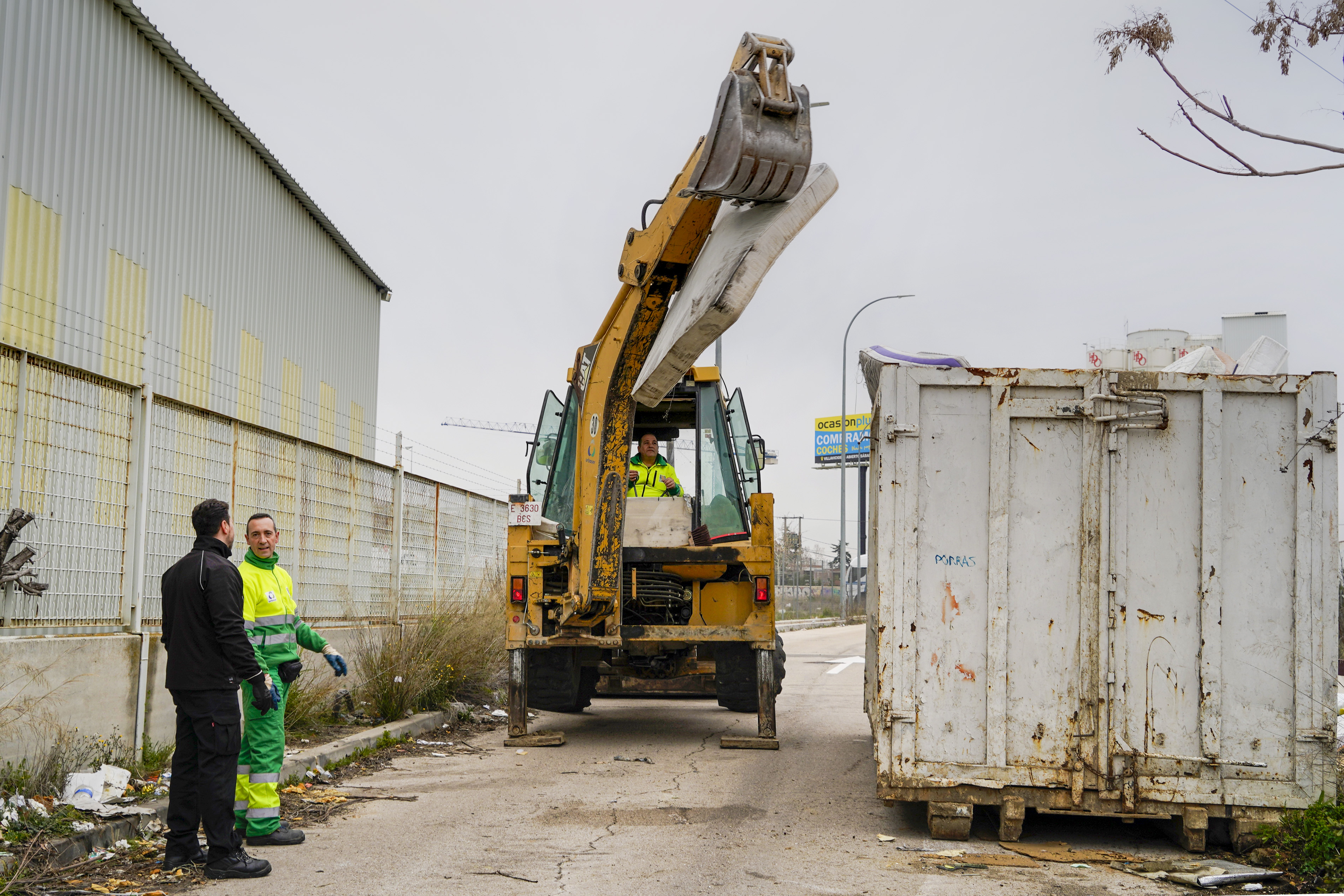 El Ayuntamiento de Móstoles inicia la retirada de residuos de la calle Puerto de Almenara en el Polígono de las Nieves