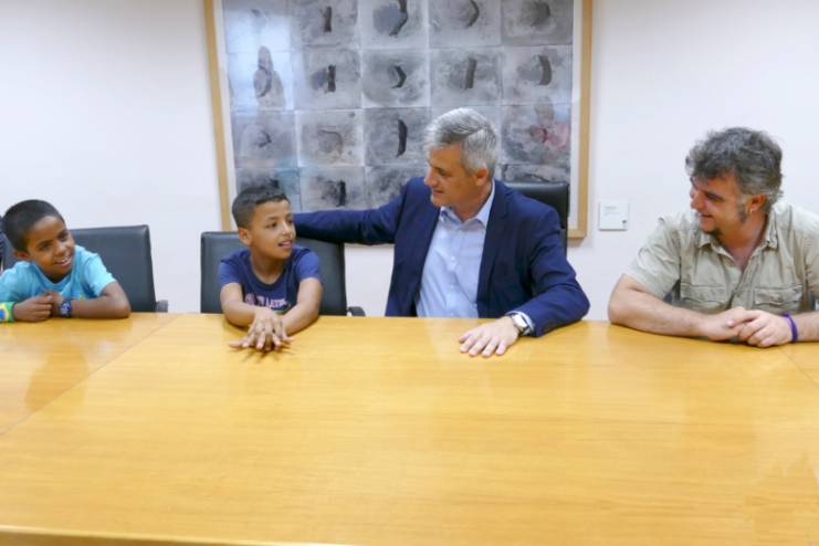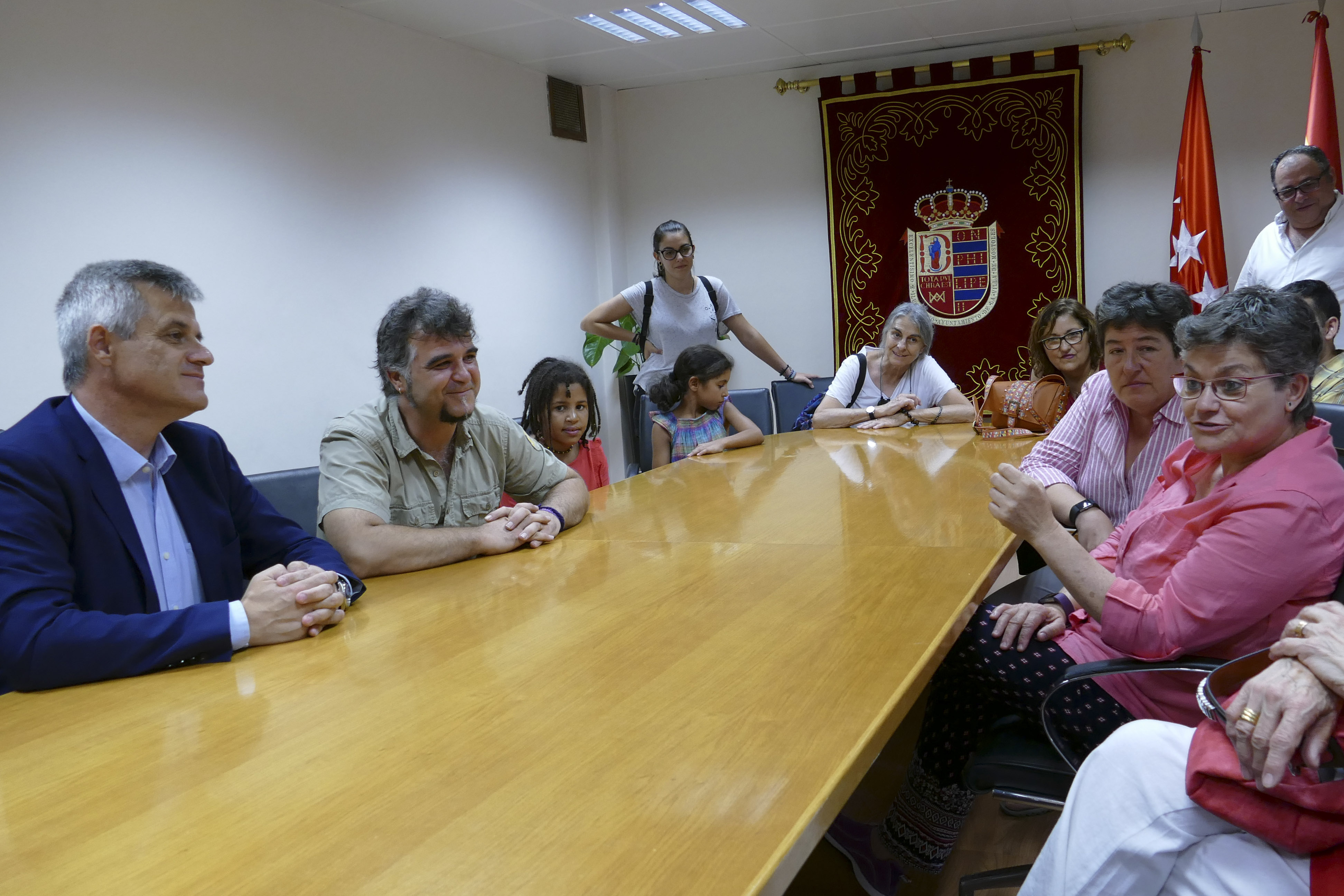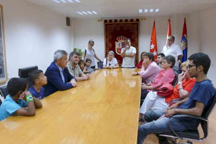 Esta tarde, el alcalde de Móstoles, David Lucas, y el concejal de Cultura y Bienestar Social, han recibido a los saharauis que conviven desde el pasado 23 de junio con familias de acogida mostoleñas, acompañados del presidente de la Asociación Móstoles con el Pueblo Saharaui, Carlos de la Mata, así como por el delegado saharaui en Madrid, Abdulah Arabi, y el secretario general de UJsario –Unión de Jóvenes, Mansur Moh-Fahdel.