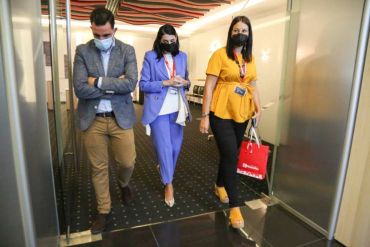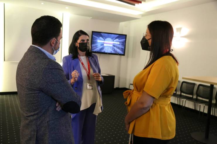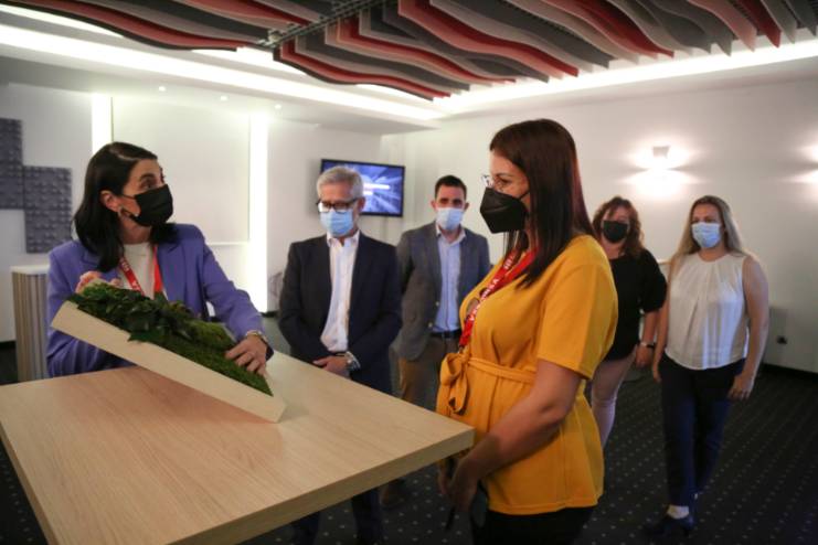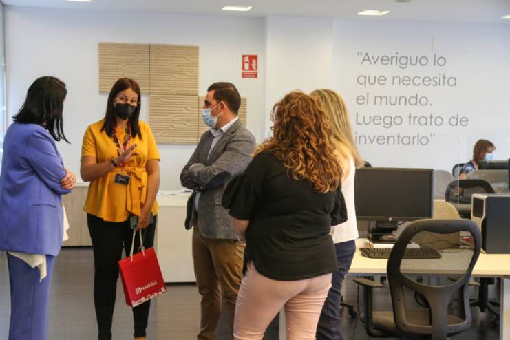 A su llegada a la nueva sede del grupo, sito en la Calle Plasencia de Móstoles, la responsable municipal fue recibida por el Director general, Luis Alberto Morón, Director corporativo, Christian Corrochano, la Directora de interiorismo e instalaciones, Julia Valle, y por Leticia Rubio y Carolina Martín, representantes de los trabajadores del Grupo.