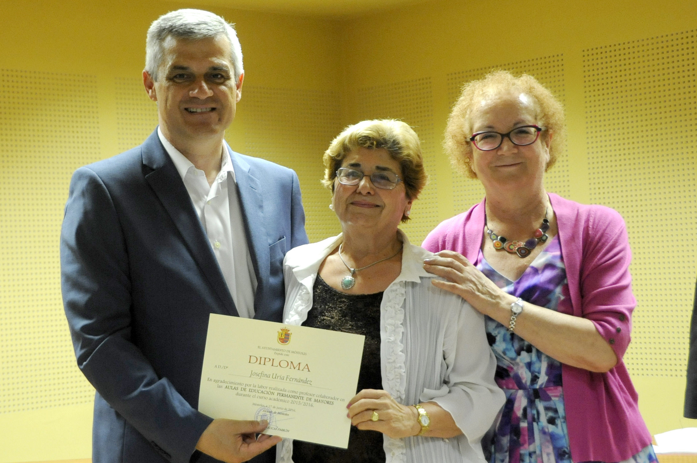 Imagen en alta resolución. Este enlace se abrirá mediante lightbox, puede haber un cambio de contextoLos participantes en las Aulas de Formación Permanente de Mayores de la Concejalía de Bienestar Social, Sanidad e Igualdad han recibido esta mañana sus correspondientes diplomas, en un acto que se ha celebrado en el Centro de Participación Ciudadana, que ha contado con la asistencia del alcalde de Móstoles, David Lucas, la concejala de Bienestar Social, Sanidad e Igualdad, Ana María Rodrigo y de la presidenta de la Junta Directiva de los Centros de Mayores, Josefina Uría, así como de los profesores colaboradores de los cursos.