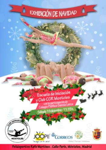El próximo 19 de diciembre el Club Gimnasia Rítmica de Móstoles organiza su "Exhibición de Navidad". Se llevará a cabo en el Pabellón Rafa Martinez a partir de las 11:30 horas. Participaran gimnastas de la Escuela de Iniciación, del Club y el Colegio Público Federico Garcia Lorca. Tendremos muchas sorpresas y la visita de Papa Noel¡¡¡¡¡