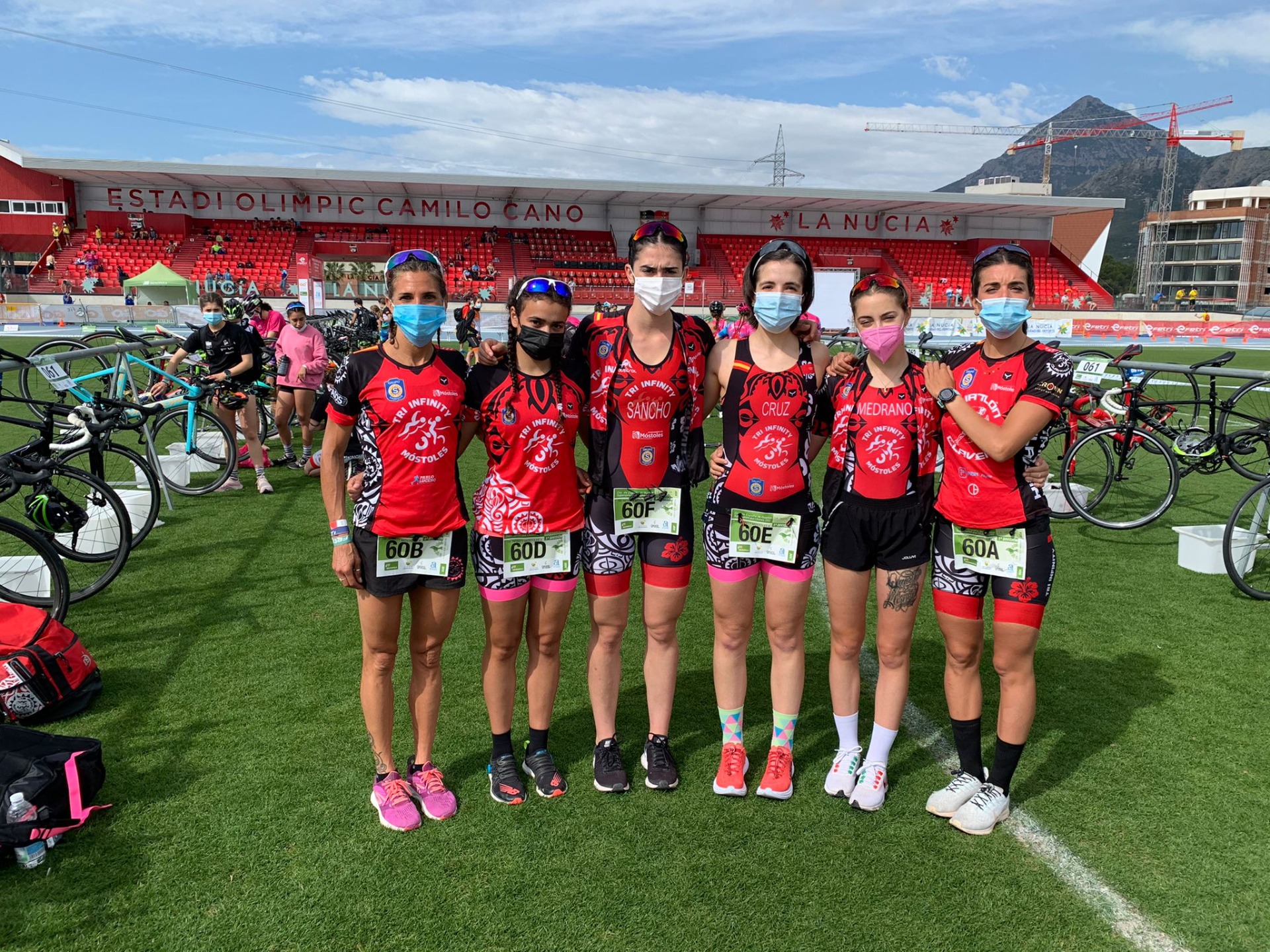 Imagen en alta resolución. Este enlace se abrirá mediante lightbox, puede haber un cambio de contextoDurante el fin de semana del 8 y 9 de mayo se celebraron en la localidad de La Nucía (Alicante) tres campeonatos de España de Duatlón en distintos formatos en la distancia supersprint, con importante participación del Club Tri Infinity Móstoles. La modalidad supersprint consiste en realizar un primer segmento de carrera de 2km, seguido de un recorrido de ciclismo de 5km, terminando con 1km de carrera a pie.