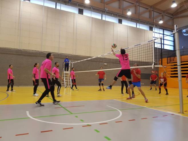Imagen en alta resolución. Este enlace se abrirá mediante lightbox, puede haber un cambio de contextoUna jornada más se disputó la Liga Municipal Senior Mixta de Voleibol en el municipio de Móstoles. Se enfrentaban el Club Voleibol La Plaza y Piratas.El resultado del partido fue de 3-0 sets a favor de La Plaza (25/14 - 25/11 - 25/13), que inició fuerte el primer set lo consiguiendo una amplia ventaja y no dando ninguna opción al rival. Mantuvo la renta conseguida hasta el final, por lo que se apuntó el primer set. El segundo, comenzó muy igualado, hasta que consiguió aprovechar una buena racha de puntos ganadores y finalmente llevarse otro set más. El tercero fue un calco al primero, inicio fuerte para adquirir la mayor renta posible y lo que produjo ganar el último set y el partido. Gracias a esta victoria La Plaza se mantiene una semana más en la zona alta de la clasificación.