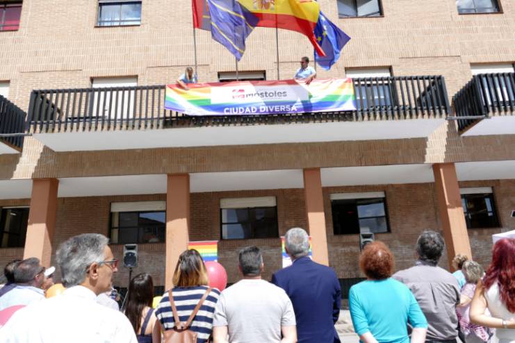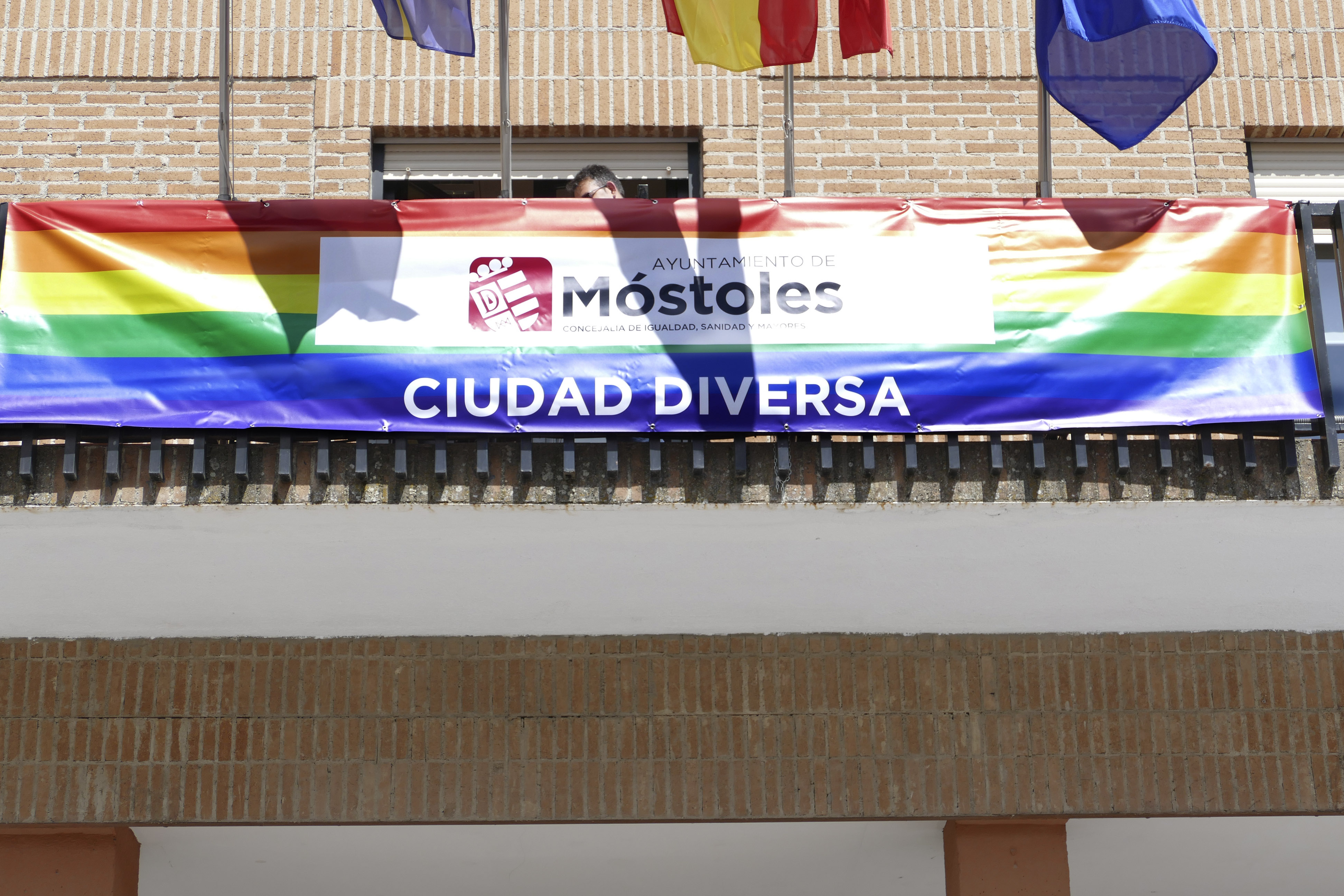 - Con motivo de la celebración del Día Internacional del Orgullo LGTBI el próximo día 28, el Ayuntamiento de Móstoles ha desplegado la bandera arco iris en el balcón de la casa consistorial y se ha dado lectura a un manifiesto en favor de los derechos del colectivo LGTBI.
