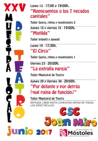 Imagen en alta resolución. Este enlace se abrirá mediante lightbox, puede haber un cambio de contextoEl Centro Sociocultural Joan Miró alberga hasta el 30 de junio la XXV Muestra de Teatro Local de Móstoles.