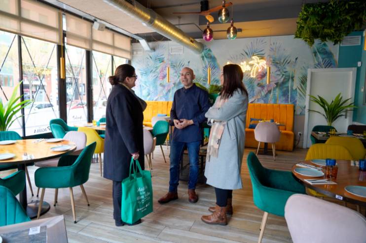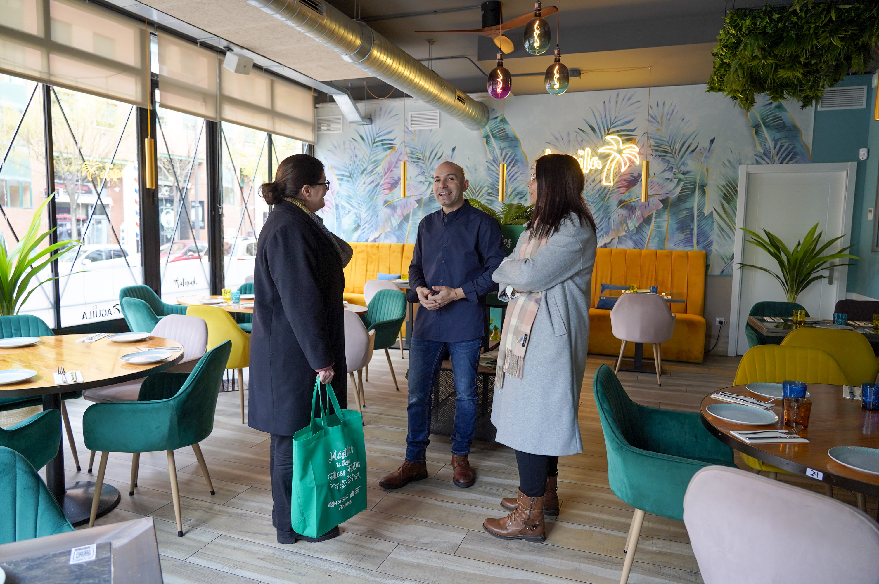 La Alcaldesa, Noelia Posse, acompañada por la Concejala de Empleo y Nuevas Tecnologías, Rebeca Prieto, han visitado hoy el Manila Urban Grill, uno de los establecimientos adheridos a esta iniciativa con la que el Gobierno de Móstoles, formado por PSOE y Podemos, busca dinamizar la economía del municipio y promover las compras en los establecimientos de barrio. El Ejecutivo Local ha destinado 30.000 euros en bonos descuento a esta campaña que lleva a cabo por segundo año consecutivo.